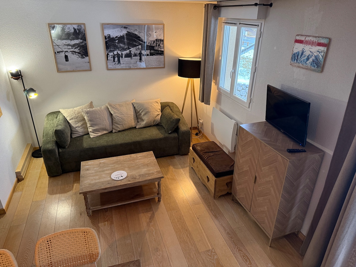 Ce studio est situé en front de neige, son jardinet plein sud permet de partir et de revenir à l'appartement skis aux pieds. Il communique également avec la galerie marchande permettant d'accéder à tous les commerces, tout en restant au chaud. L'ESF est à 200 mètres du studio (soit par la galerie marchande, soit en sortant par le jardin). les premières remontées mécaniques sont à 100 mètres de l'appartement.