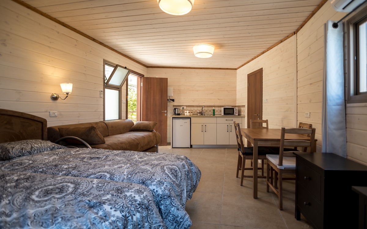 Secluded from the other units, this beautiful room has a magnificent view of apple orchards and the mountains of Lebanon. Elegantly decorated with chic white decor, this room will allow you to relax and enjoy a peaceful and romantic stay. The Meshi BaLavan Cabin (White Silk) is perfect for celebrating special occasions, such as birthdays and anniversaries, your wedding night, or a quiet weekend together. In addition to the en-suite bathroom and fully equipped kitchen, which also includes a coffee machine, you can enjoy a pampering jacuzzi overlooking a glorious view, a ceiling mounted TV that rotates 360 degrees, cable TV and a home theater system. This unit also has its own private garden where you can enjoy magnificent sunsets and a feeling of peace and serenity. More info: http://www.levarimeshi.com/#!c_services/c1ger