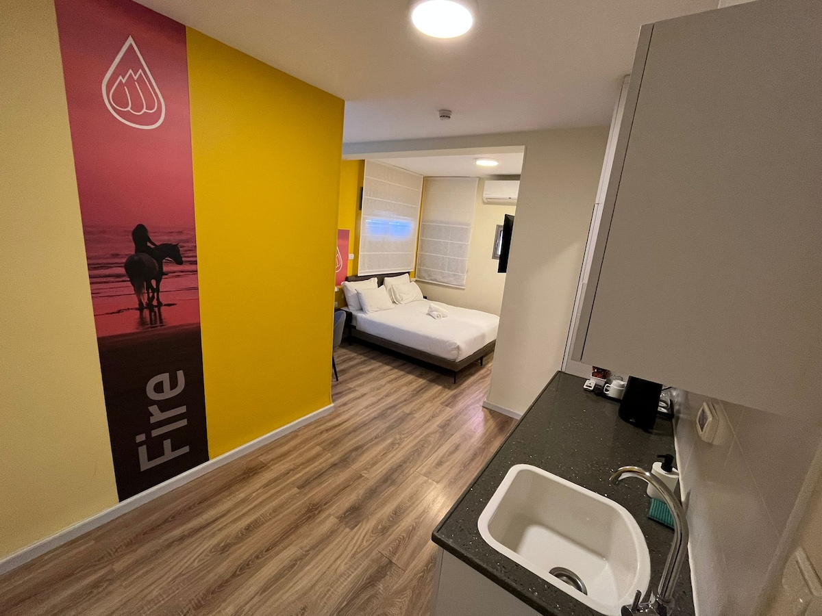 Located in the best location in Haifa in the vibrant neighborhood of Bat Galim, just 10 min walk from the train station, 5 min walk from the famous Haifa cable car, and just 1 min walk from the beautiful Bat Galim beach and promenade! Close to everything great Haifa has to offer! This lovely studio apartment is part on the Domus Bat Galim Hotel on it's third floor. Many of our guest are long term guest creating a homey vibe and atmosphere. Out team is available 24/7 to assist.