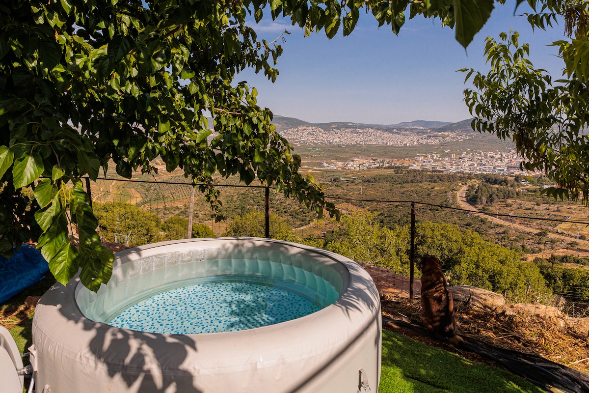 A geodesic dome located in an olive grove at the foot of the mountain in a private and quiet area. The house is wide, spacious, modern and special. There are strong ACs, a fully equipped kitchen, espresso machine, microwave, washing machine, an outdoor seating area with a BBQ, and a pool. The surrounding area is beautiful with natural springs and hiking trails. The Sea of Galilee is only a 10-minute drive away. This house was hand-built by us with love&care. We are happy to share it with you!