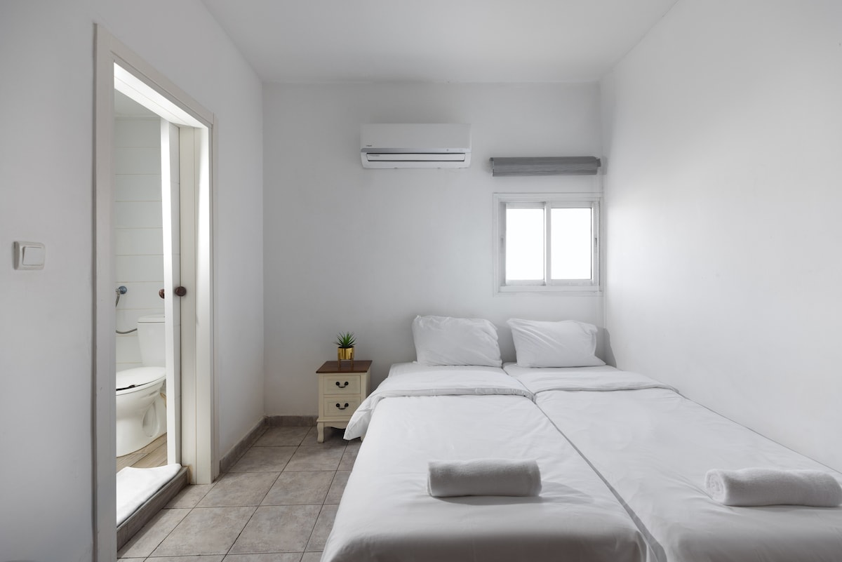 Spacious private room in a boutique guesthouse, right in the heart of Tel Aviv. Perfect for families or groups, this room features a queen bed and a single bed, comfortably sleeping up to 3 guests. You’ll be just steps from Rothschild Boulevard, with the best cafes, restaurants, and nightlife right outside your door. The beach and major attractions are also within easy walking distance.