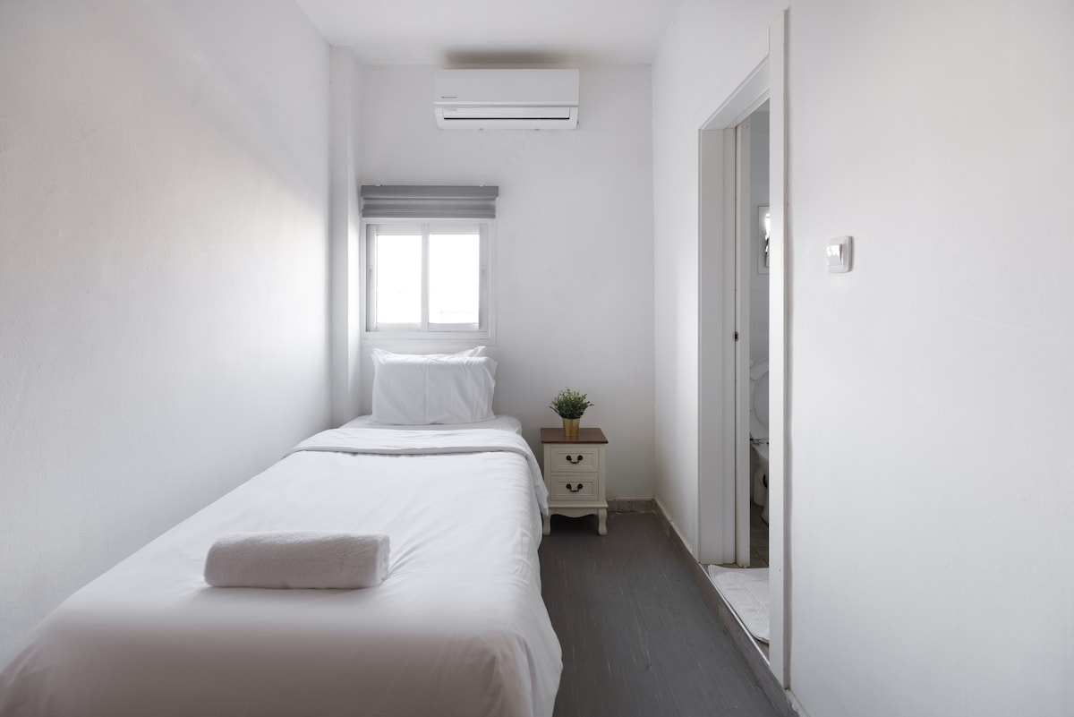 Located in the middle of city center (Jaffa St), Just a 3-minute walk from the light rail, just a 7-minute walk from the Old City(Western Wall, Church of the Holy Sepulcher, Via Dolorosa, Mamilla Mall, Dome of the Rock, Tower of David, Mount of Olives). 7 min walk Mahane Yehuda Market Unit includes a private bathroom, bed linen, towels, and shampoo. Features A/C, flat-screen TV with Netflix & YouTube, Free Wi-Fi. in the shared are you will have shared basic kitchen, and shared balcony.