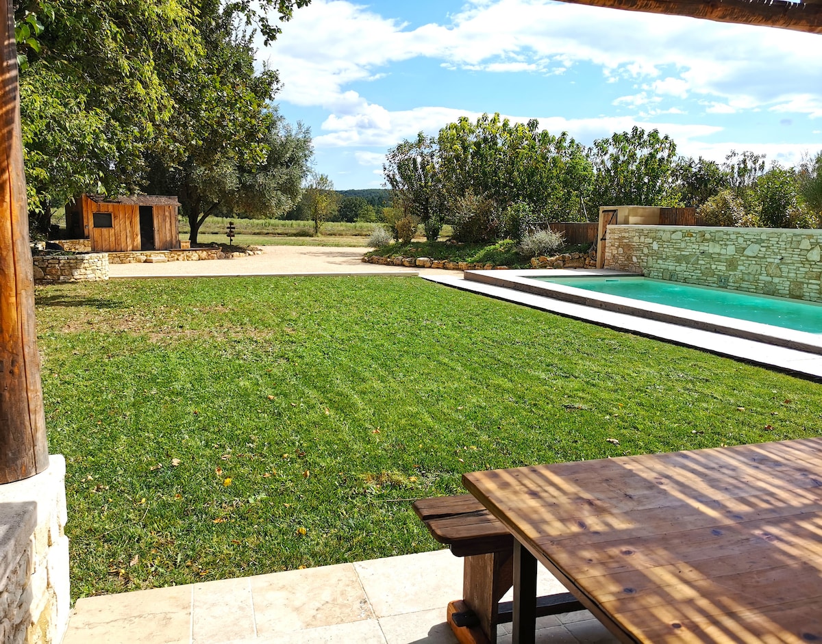 Your cozy getaway awaits in Saint Andre de Cruzieres at this luxury apartment. This gorgeous space features 1 bedroom with a luxurious king size bed, a modern bathroom with Italian shower, fully equipped kitchen and essential amenities like AC and heating, bathrobes, a washing machine, and a dining area. A hectare of garden is yours to wander, scattered with umbrella pines, cypress and olive trees. You can float in the pool (12x6) or hone in on the honesty bar in the pool house.