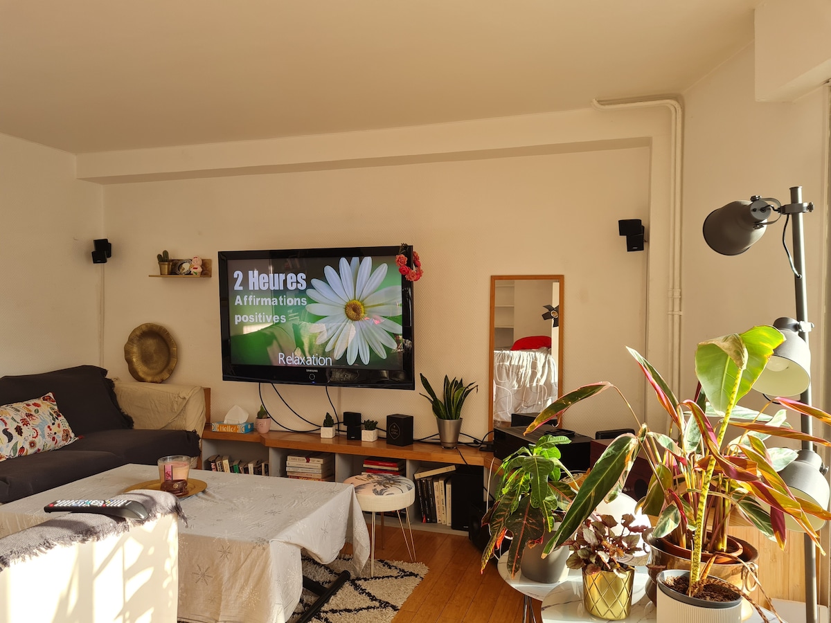 Air conditionned Cosy apartment near the metro station "mairie de montrouge" (line 4) . 20 minutes only from the center of Paris, 25 minutes from Orly airport by taxi Shower with massage jets, strong fan, large screen home cinema, high speed wifi, ergonomic office chair, all-in-one kitchen (espresso machine dolce gusto), confort mattress 45kg/m3, 17cm thick. Towels and sheets provided. Parties or evenings not allowed, pets not allowed. No smoking apartment.