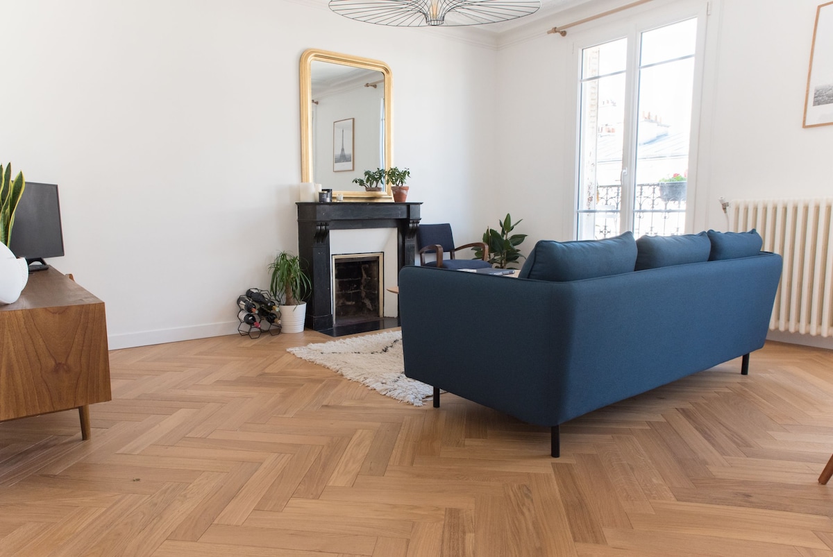 A beautiful apartment located in a quiet semi pedestrian street with many typical Parisian French coffees and restaurants. Enjoy the calm, the comfort and the light (windows on both sides) of my newly renovated apartment during the day and easy access all arrondissement from Paris in less than 30 minutes with multiple close metro lines.