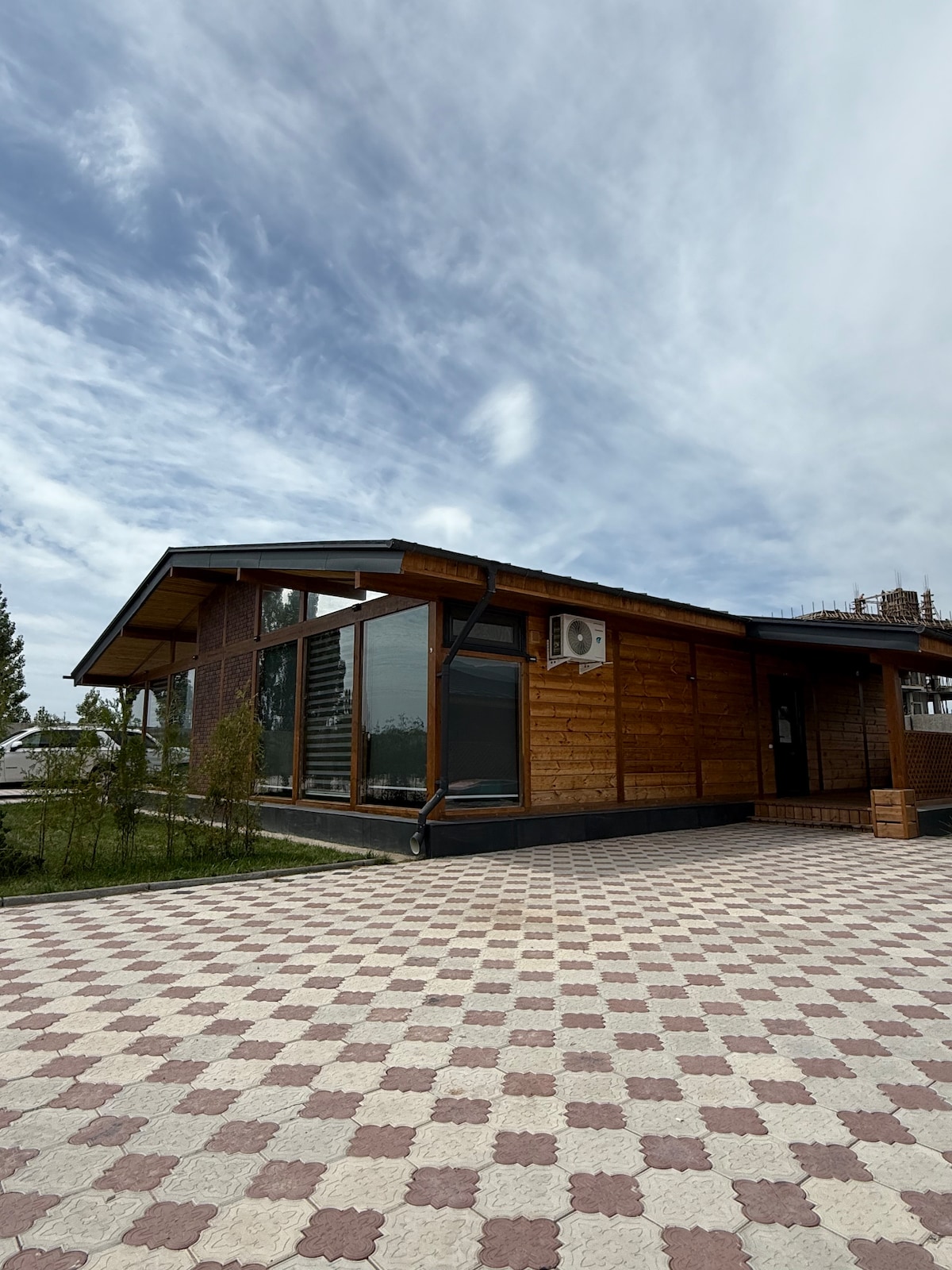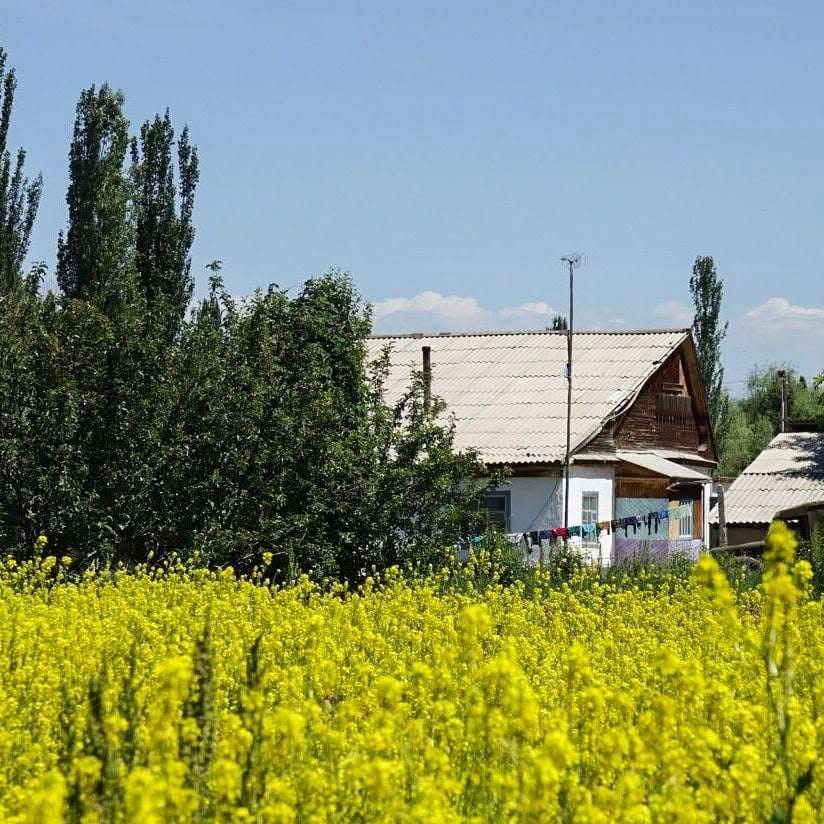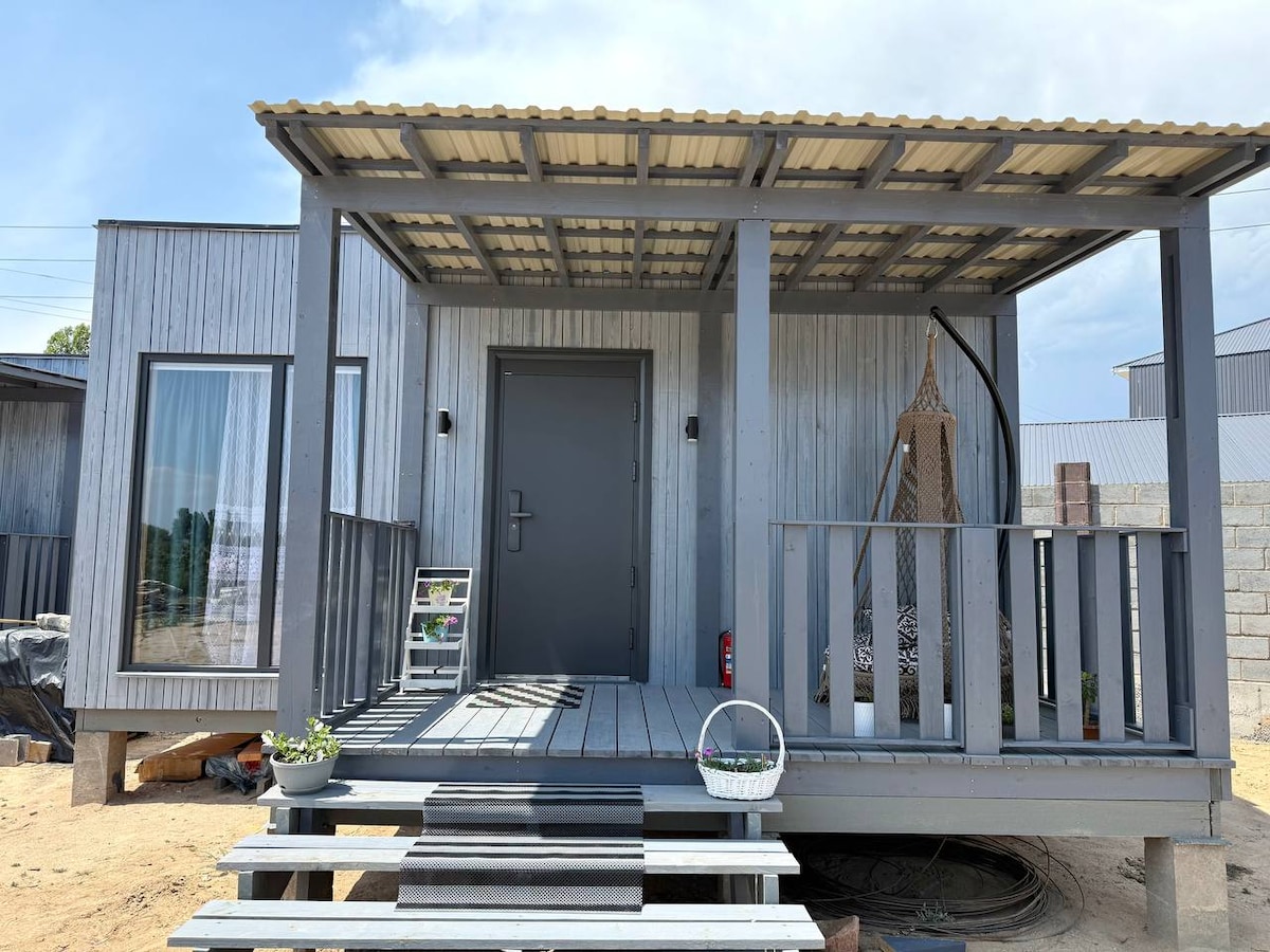 A small yet cozy house in picturesque Cholpon-Ata is a perfect choice for a holiday at Issyk-Kul. Guests are welcomed by a terrace with a seating area. Inside, there is a bright interior with wooden finishes, a double bed, a dining area, and a fully equipped kitchen with a stove, refrigerator, and microwave. A modern bathroom with a shower makes the stay comfortable. The house is ideal for couples, families, and friends.