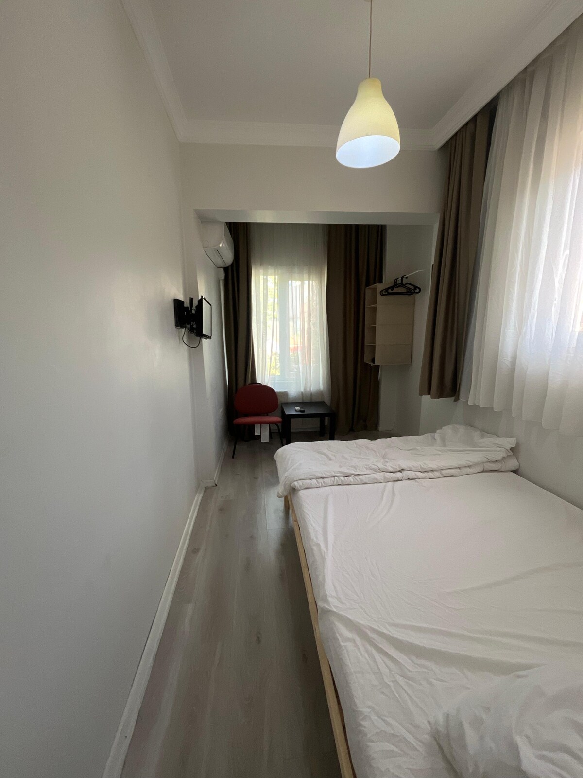 Our room is luxurious, modern and carefully designed. Located in our hotel, this room has a large double bed, a 43-inch smart television and a private bathroom. Our room has a small kitchen with a mini fridge and small kitchen supplies. Our room is on the 3rd floor. There is a 24/7 camera and security system. The exterior door of the building is specially coded and protected. Our room is designed to accommodate 2 people.