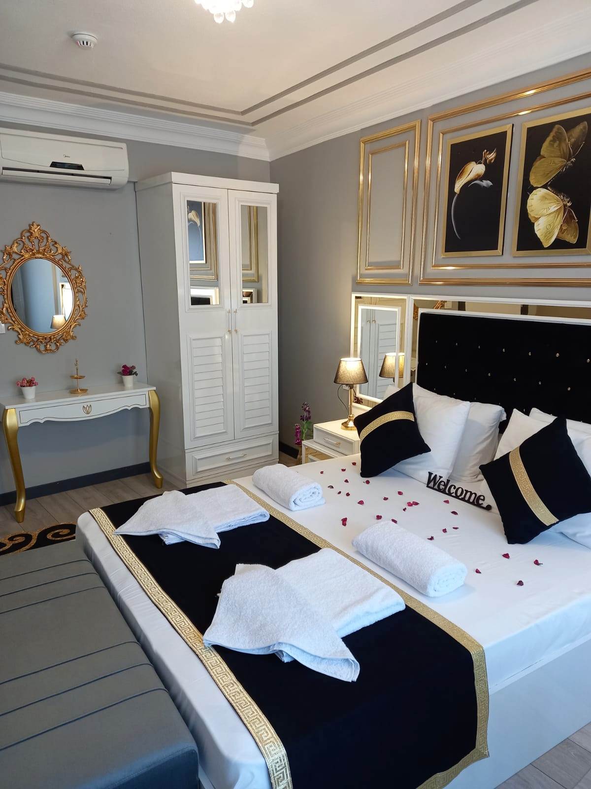 🏡 Two-Bedroom Sultanahmet Junior Suite Elegant, recently renovated two-bedroom suite with a separate living room and city views. Perfect for families or groups. Just a short walk to the Blue Mosque, Hagia Sophia, and Sultanahmet’s historic attractions. Restaurants, cafés, and shops nearby.