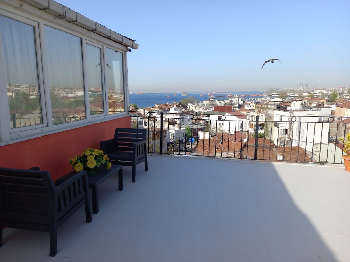 *10 min to Taksim Square *15-20 min to Hagia Sophia, Blue Mosque, Grand Bazaar (public transportation) *Local experience nearby centers and tourist spots Duplex apartment First floor: Living room, shower and kitchen Second floor: Bedroom and Toilet. *Rooftop Terrace with sea view *Comfortable private apartment *Equipped kitchen, * Heating, * Air Conditioner *Free Wi-Fi internet *Lockable room *Nearby main road & Bus stop, *Nearby the sea, *Nearby Super Market