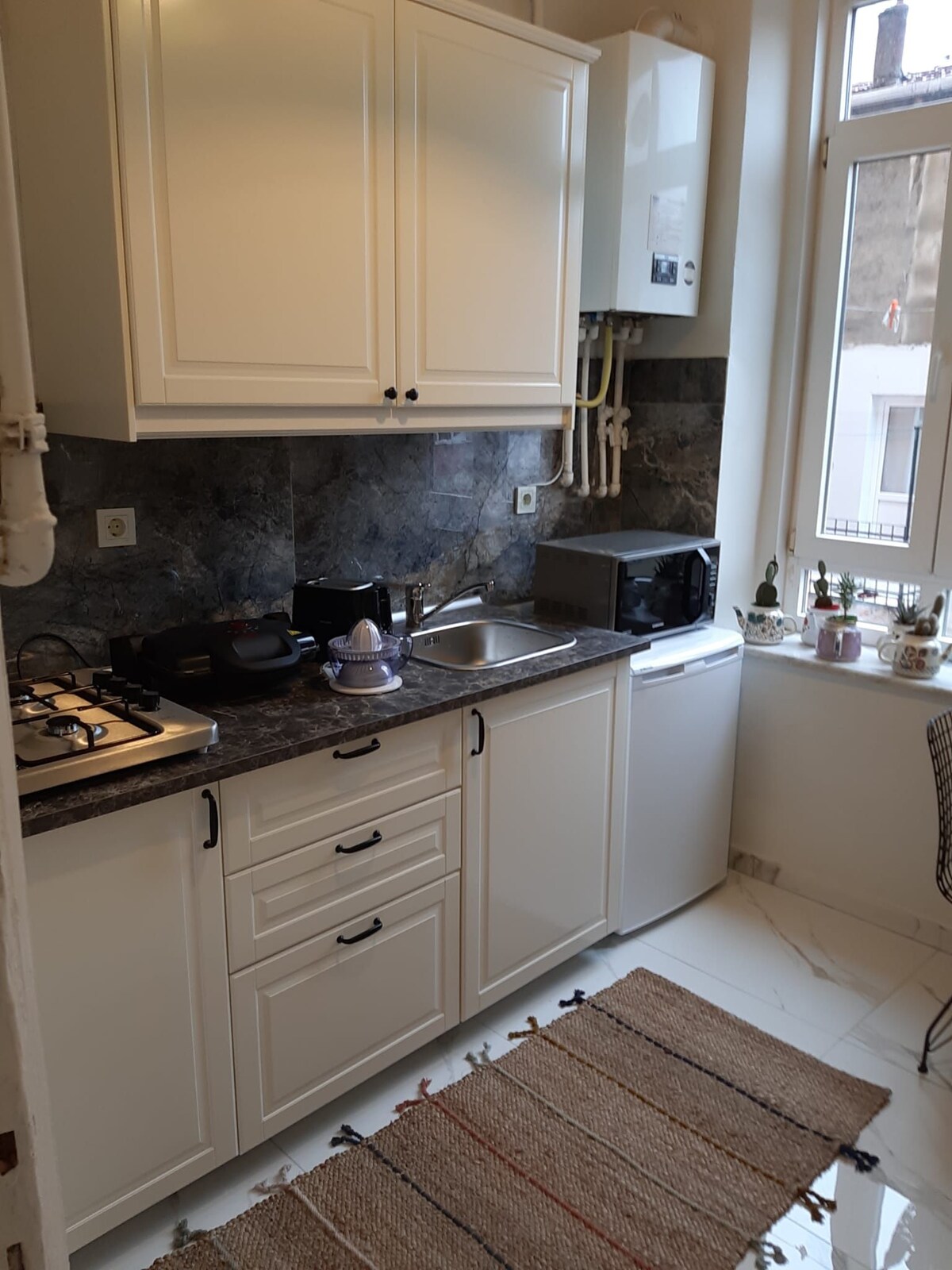 (🎶 a mansion that feels like winter garden) We are on a beautiful island, Heybeliada =) It’s 150 years old island house, Mansion of Hristo Nikolaidis. It has beautiful sunrise lights in the morning and it takes 2-3 min. to the house from centre by walking. It has a beautiful balcony with great seaview. There is natural gas, so warm at winter. I have a cat at home, Luna, so friendly. Kitchen has everything you need for cooking with 2 windows and also seaview. 🐿