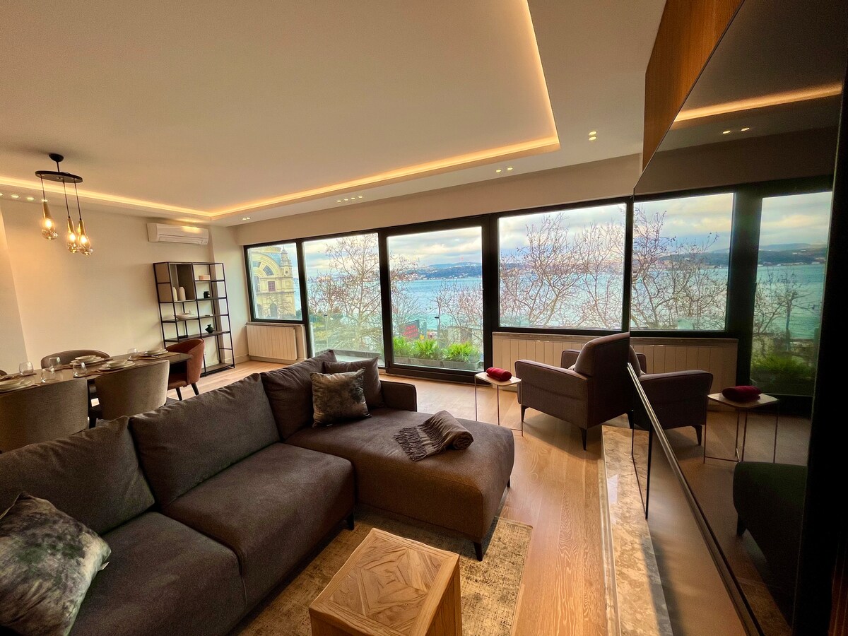 Located at the seaside of Cihangir/Beyoglu (hip area in Istanbul full of cafes, bars and galleries) this 160 m2 deluxe flat is 2 minutes walk to seaside & tramway, 15 minutes walk to Taksim city centre & subway. Designed with japandi style furnitures, this bright apartment has magnificient bosphorus view on all its rooms and areas. It accommodates up to 6 people. From espresso machine to cold water dispenser, yoga equipments or free netflix... All your needs for a dreamy holiday are available.