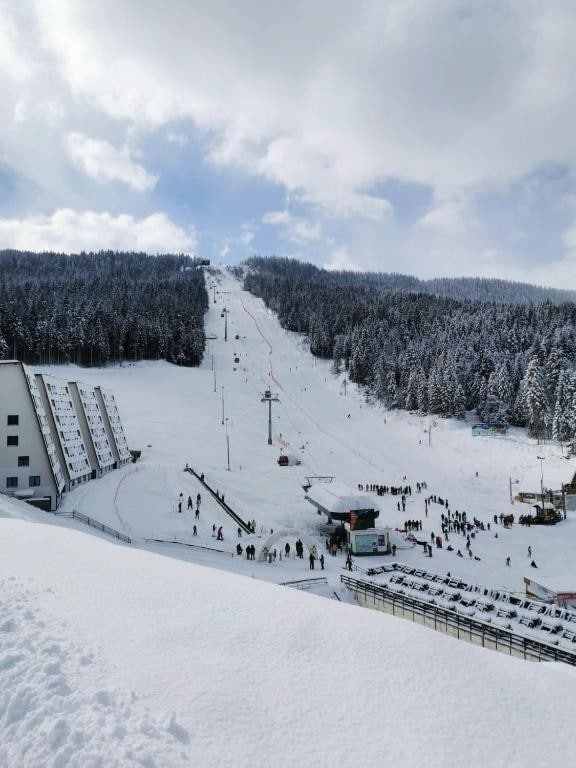 Sunny modern apartment with a direct view of the ski slope and gondola. Enjoy cozy underfloor heating, and a balcony above the baby lift, perfect for families to watch their kids’ first ski steps. Ski directly from the building to the slope (ski-in/ski-out). Located in an official air spa, just 20 minutes from Sarajevo. Ideal for year-round relaxation, skiing, hiking, and exploring Ravna Planina’s lake, Dino Park, and scenic trails surrounded by pure mountain air. Paid Parking 12 euro = 24h