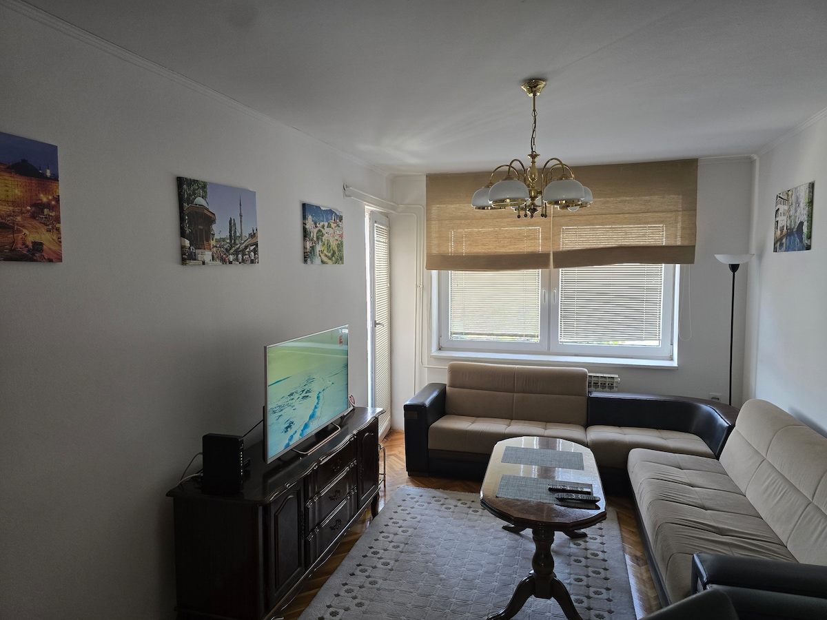 Three room apartment (two bedrooms, one living room) in center of Sarajevo, fully renovated, with new furniture, kitchen and bathroom. Across the street, there is a famous shoping center called BBI. Apartment has 70m2.