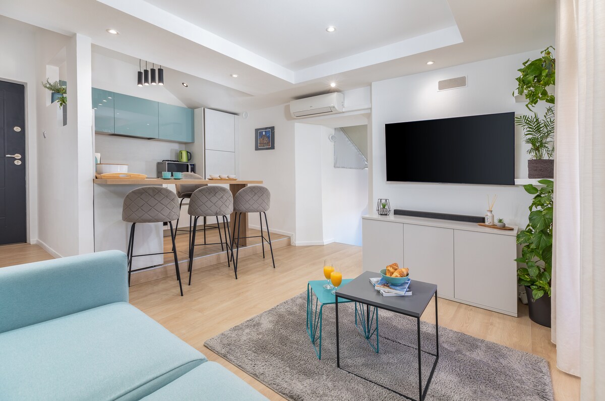 Artistic, elegant and comfy brand new renovated two bedroom apartment in the very center of the city just at the corner of the entrance to the old town. Private parking space available. The living room offers a beautiful view of the parks, greenery and the Roman amphitheater where you feel like you can touch it. From the kitchen bathed in flowers you can enjoy your morning coffee with a unique view before going to explore the city or enjoy your afternoon peace.