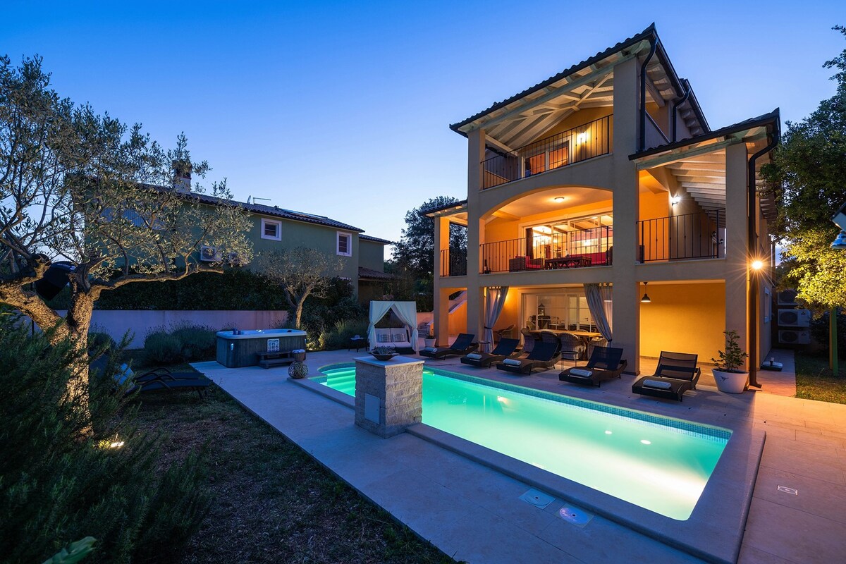 Villa "Casa Mediterana" is located in a very quiet place (800meters from the beach) where you can find peace and relaxation, drink coffee on the terrace and enjoy your meals while watching the beautiful sunset. An outdoor pool with sun loungers, an outdoor kitchen with barbecue and a large terrace, a fenced yard adorned with old olive trees for pets, and a playroom for children.