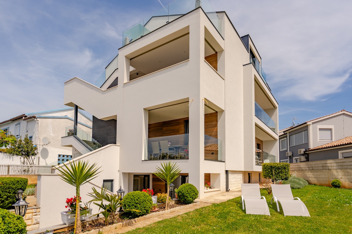 Casa Percan is a new and modern holiday home with whirlpool. A large swimming pool with deckchairs is available for use right across the street. It's located in a quiet part of Premantura. The holiday home consists of 2 bedrooms (one bed 160 x 200 and two bunk beds), a living room, a fully equipped kitchen and 1 bathroom. There is a free private parking. In the yard there is a summer kitchen with a grill on gas, seating area, and also loungers for relaxing.