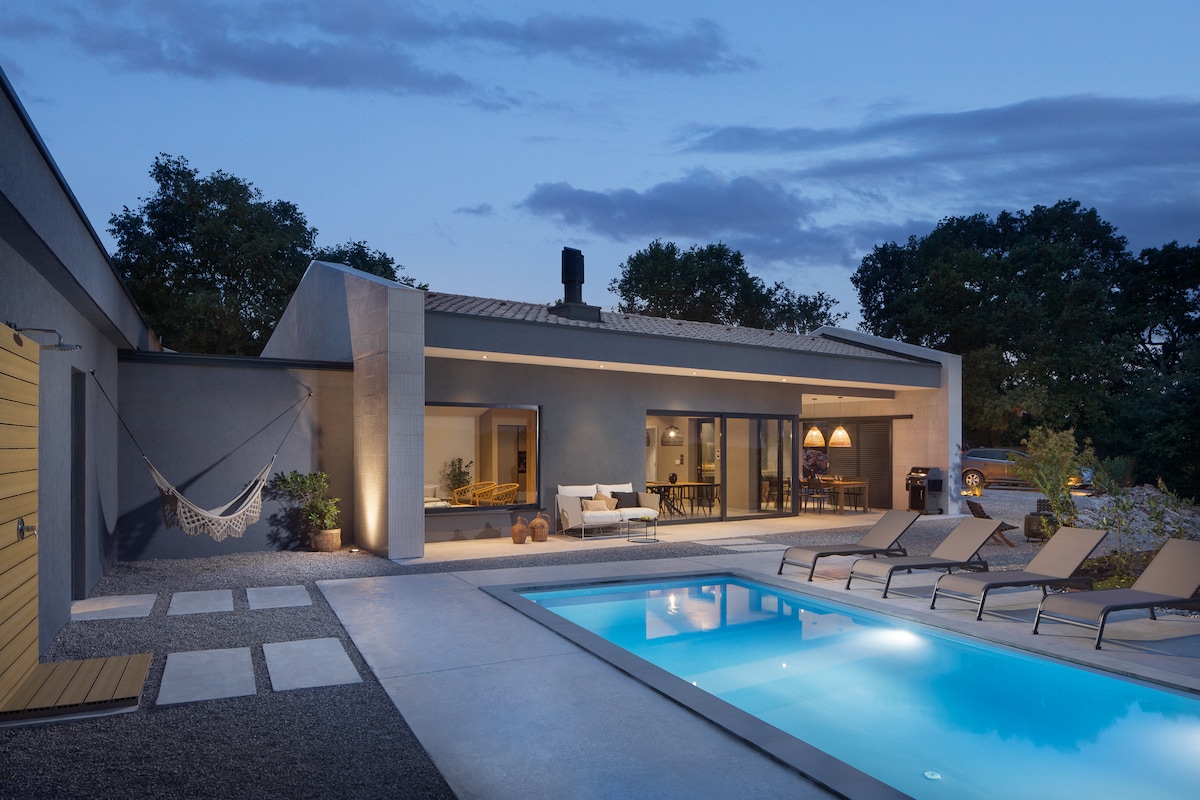 This luxurious holiday home blends modern comfort with authentic Istrian charm, within easy reach of all the attractions of Istria. Partly built from traditional stone, it offers warmth and elegance. You can enjoy 4 en-suite bedrooms, wellness area with sauna and whirlpool, alluring pool, outdoor kitchen with grill and elegant lounge zone for unwinding, all year round. Surrounded by native greenery, it’s a perfect retreat for those seeking luxury, tradition, and privacy in a tranquil setting.
