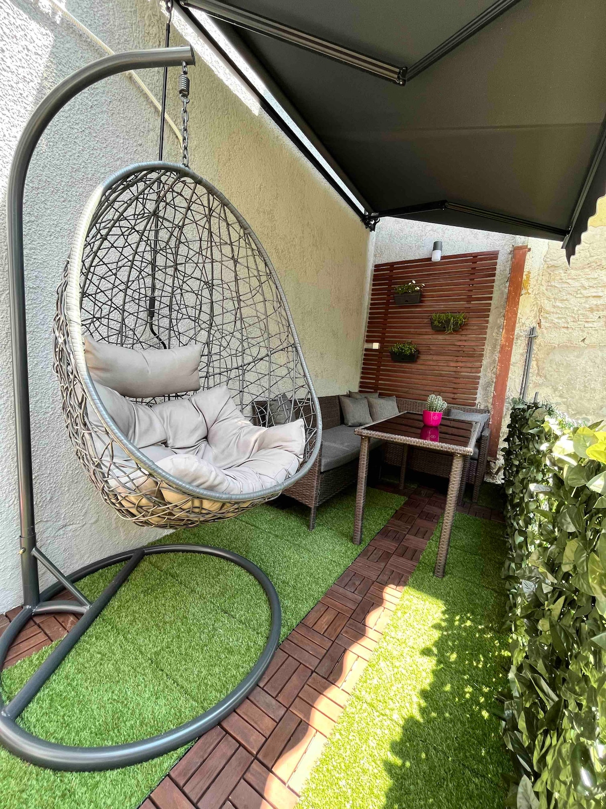 Studio for 2 persons with bathroom, kitchen and a lovely garden in front, for your cozy breakfasts or evening drinks listening to the birds chirping surrounded with greenery. Garden provided with barbecue set. The studio is situated at the back of the house, very peaceful and away from the street. Furry friends are welcome. The nearest beach is at 750m distance (less than 10 min walk). Supermarket, various restaurants, bakery, pharmacy, public laundry all situated within short walking distance.