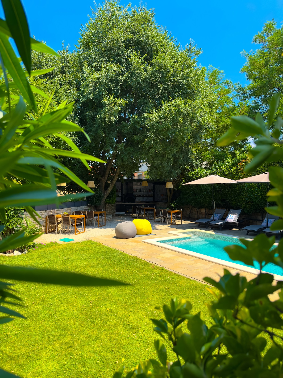 Indulge in comfort at the modern "Astinian - apartments Jadranka" nestled in Štinjan village. Conveniently situated 5 km from bustling Pula and 3 km from picturesque Fažana center, revel in tranquility in a sun-kissed cul-de-sac. Just 400m from the sea, unwind in the lush garden, complete with a lawn, spacious swimming pool, terrace adorned with garden furniture, and barbecue facilities.