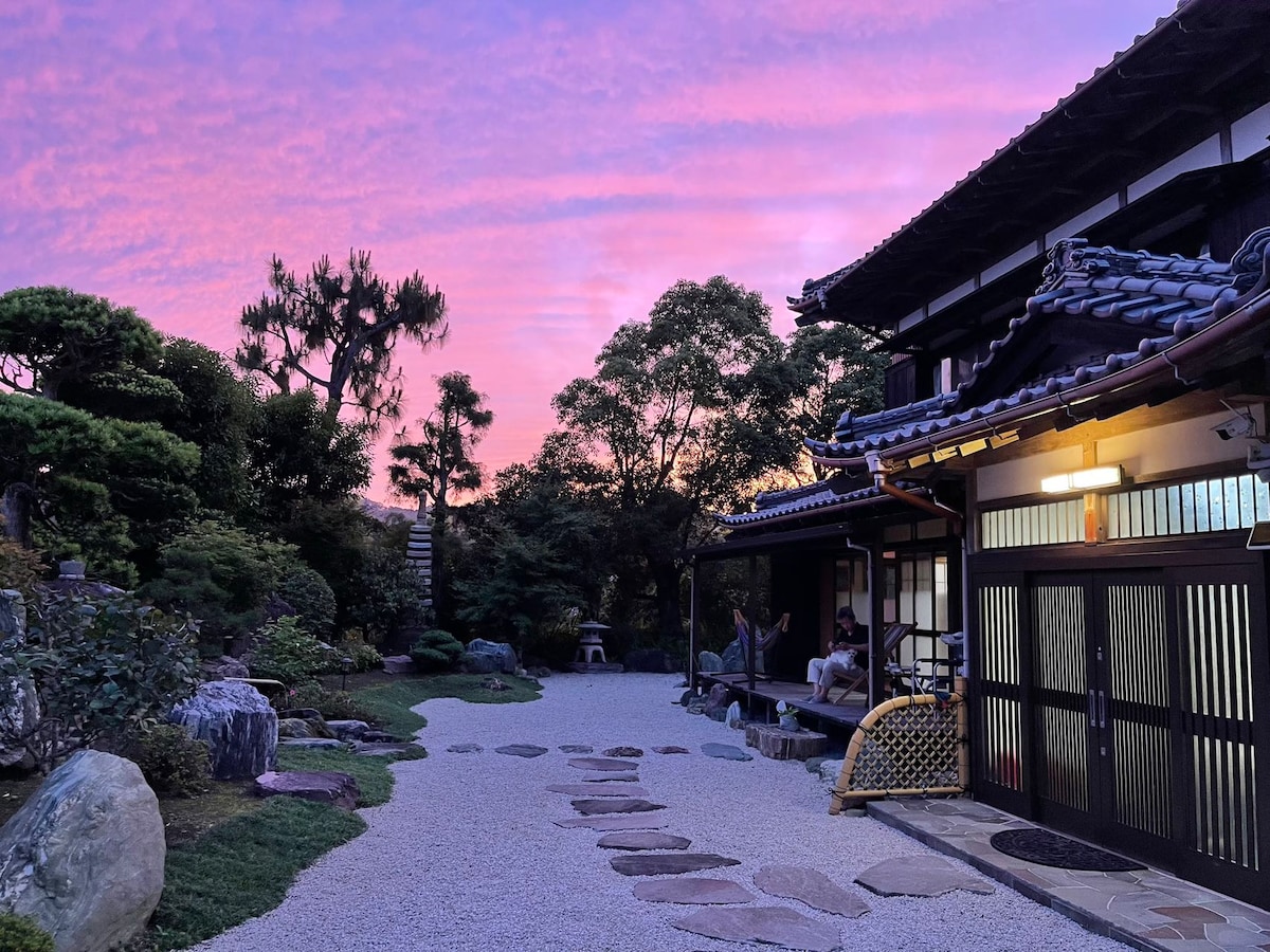 御覧いただきありがとうございます。 広大な敷地・枯山水庭園を堪能できる古民家になります。 昔ながらの構造のため1階部分はとても広々としており室内から眺める庭園は普段あまり経験することのできないひとときをお過ごしいただくことができます。 最大人数16名様までご宿泊可能です。 施設となりに駐車場がありますので無料でご利用いただけます。(普通自動車8台まで駐車可能) BBQは追加料金が必要となります。 ご希望のお客様は事前にお知らせください。