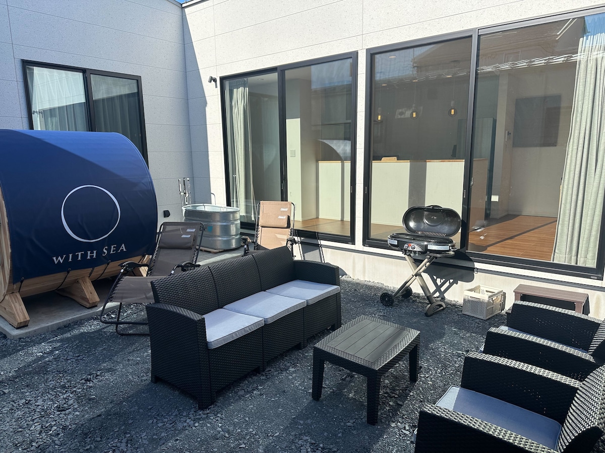 1.5 hour drive from Tokyo 1hour drive from Narita and Haneda airports Take your children for a walk on the beach Afterwards, enjoy a beer on the spacious wooden deck And of course, BBQ in the garden at night! Fresh seafood caught in the sea of Chiba and and fresh vegetables Even if it rains, you can BBQ on the wooden deck under the eaves of the roof or on the covered tile deck. The lighting in the garden allows you to play outside even at night.