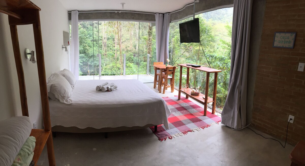 Super exclusivo!!! todas as torneiras e chuveiro possui água potável e mineral acomodação suite com ar condicionado wi-fi super potente, TV smart Full HD com canais de streaming, acomodação com entrada privativa e cozinha externa ! A menos de uma hora do Rio, vc estará, com muito conforto, ao lado de árvores centenárias, trilhas privadas, montanha, cavernas, piscina de água da fonte. Venha para um descanso genuíno na natureza.