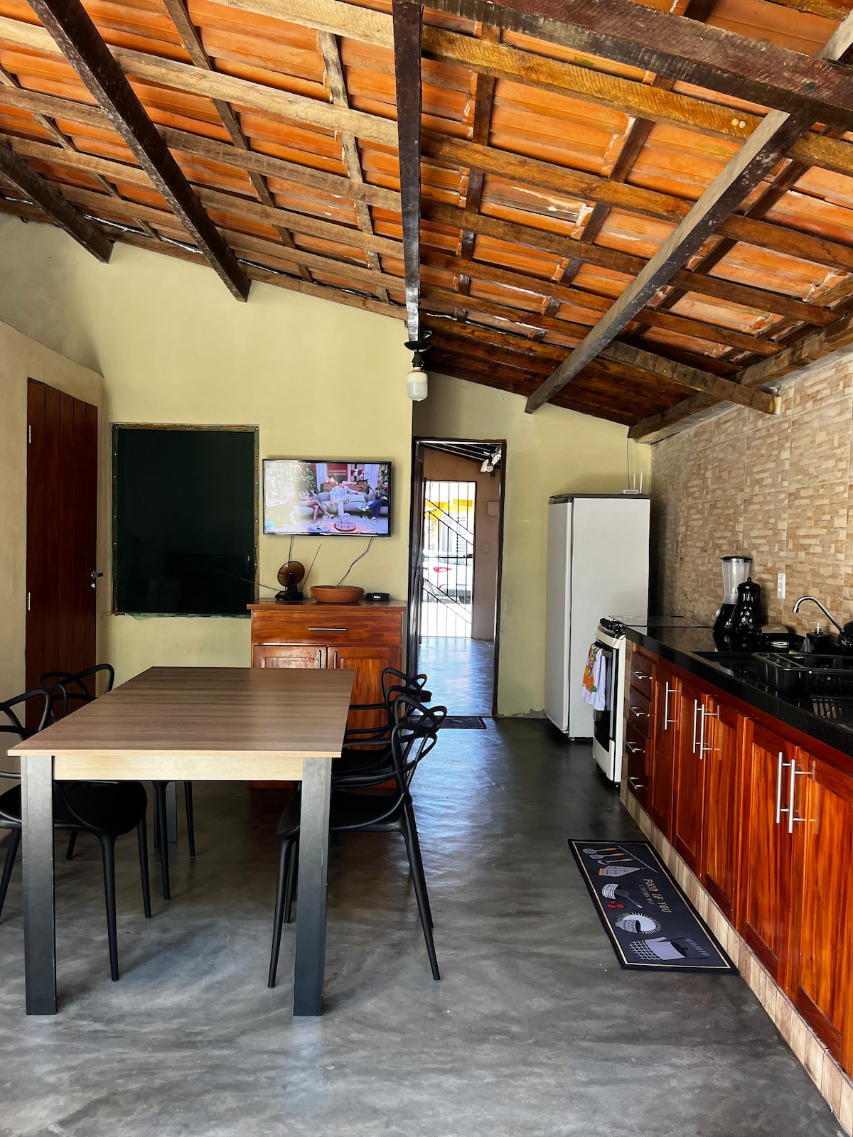 Charmosa casa de 3 quartos, sendo 2 quartos com camas de casal e 1 quarto com 2 camas de solteiro, acomoda confortavelmente 6 pessoas. Em condomínio beira-mar na Praia do Pé de Serra, Serra Grande/BA. A poucos passos da areia, com ar-condicionado, Wi-Fi fibra, cozinha equipada, TV, espaço gourmet com churrasqueira, jardim com espreguiçadeira, chuveirão e redes na varanda. Estilo moderno e acolhedor, ideal para casais ou famílias que buscam conforto, tranquilidade e contato direto com a natureza.