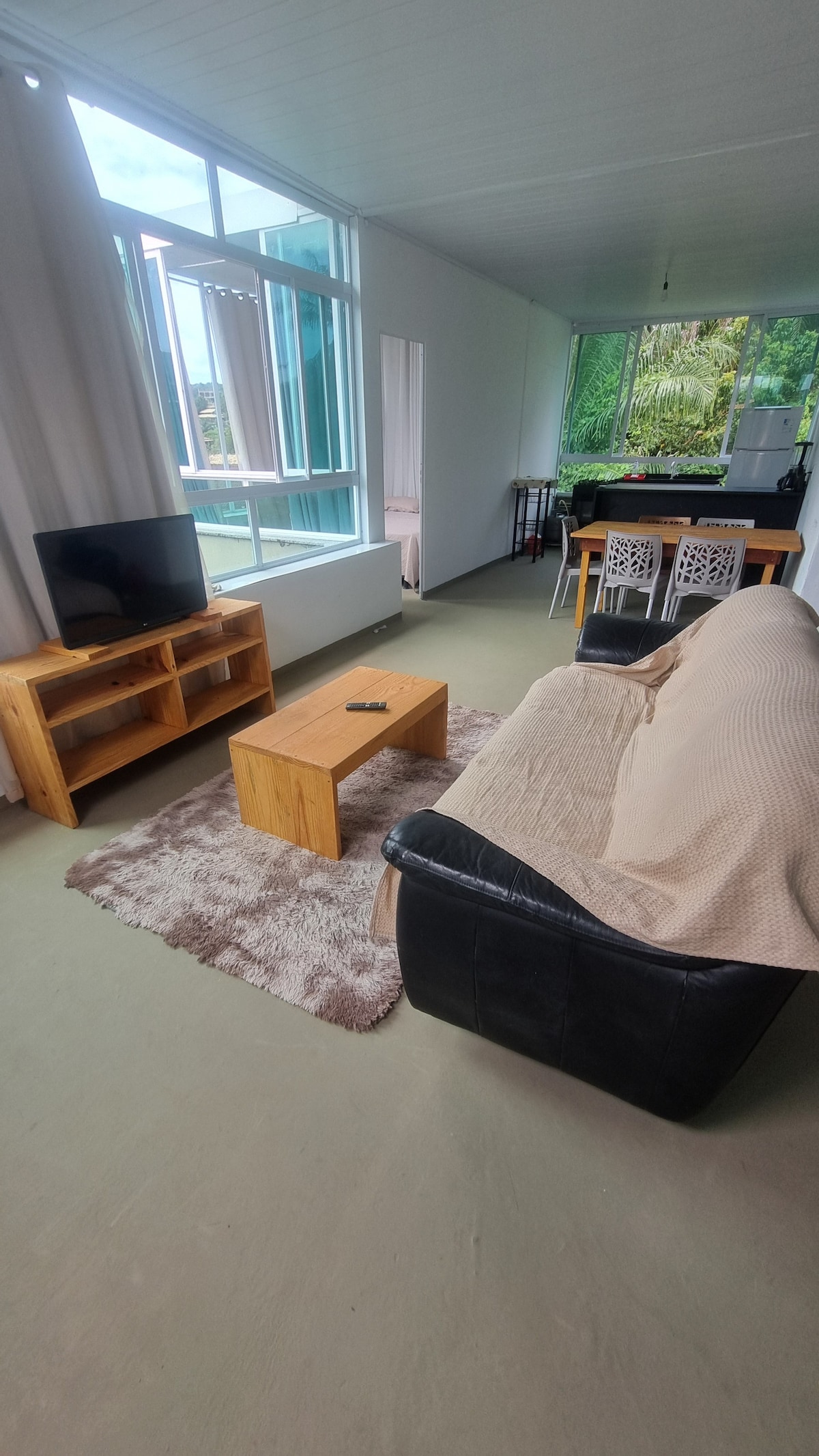 Sinta-se abraçado pela natureza em nosso refúgio no Alto da Mata. A varanda, com sua churrasqueira e mesa ao ar livre, é seu camarote exclusivo para o espetáculo diário do pôr do sol sobre a copa das árvores. O conceito aberto cria um ambiente único e integrado, perfeito para criar memórias em um cenário de tirar o fôlego, a poucos minutos do centro de Itacaré.