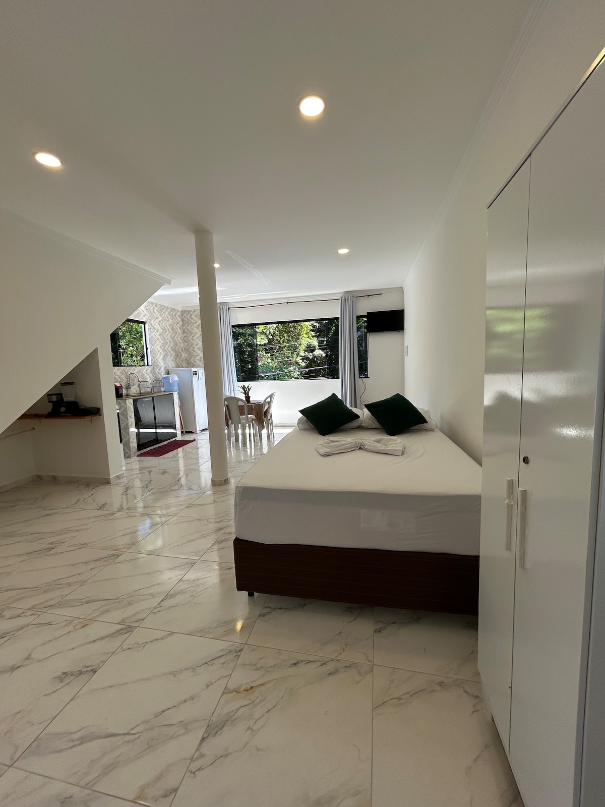 Independent accommodation with air conditioning, Wi-Fi, television, bathroom, queen-size bed, kitchenette, private patio with kitchen area and barbecue. Starting in July 2025, the Residência is equipped with a private pool and jacuzzi for a high-end experience. La Concha Beach is a 1-minute walk from the accommodation. The La Concha neighborhood in Itacaré is a quiet place with a shared ocean and nature. The accommodation is close to all amenities, shops, beaches, and the city center.