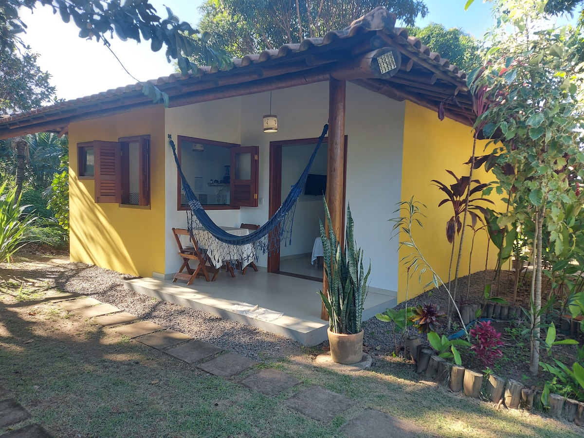 Divirta-se com toda a família neste lugar cheio de estilo. Bangalô com decoração praiana, localizado a 5 KM, do centro de Itacaré, próximo as melhores praias. Ambiente tranquilo, sofisticado, acolhedor, seguro, espaço com jardim, gramado, bem arborizado, com visitas de diversas espécies de pássaros. Bangalô completo com cozinha toda equipada, 1 cama king e um sofá cama super confortável para 2 pessoas. A experiência que sua família procura com tranquilidade, em um paraíso, baiano chamado Itacaré