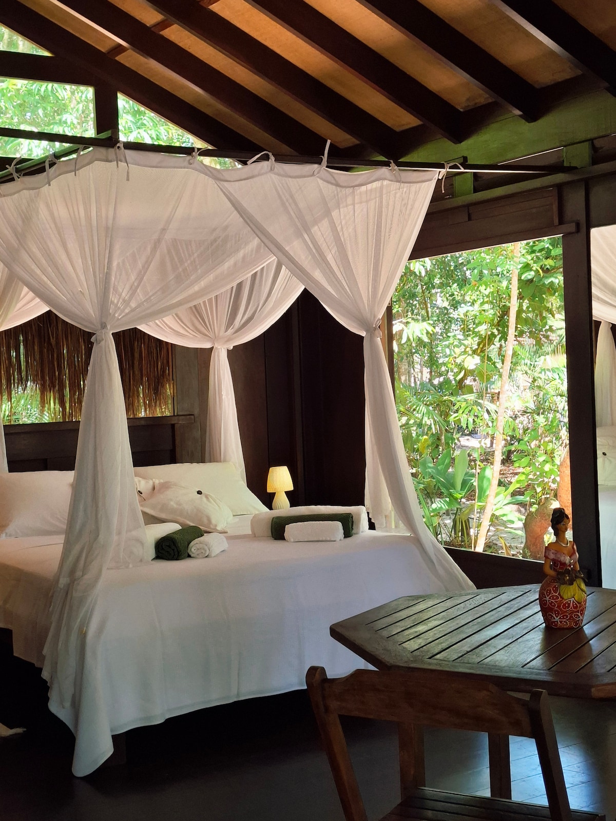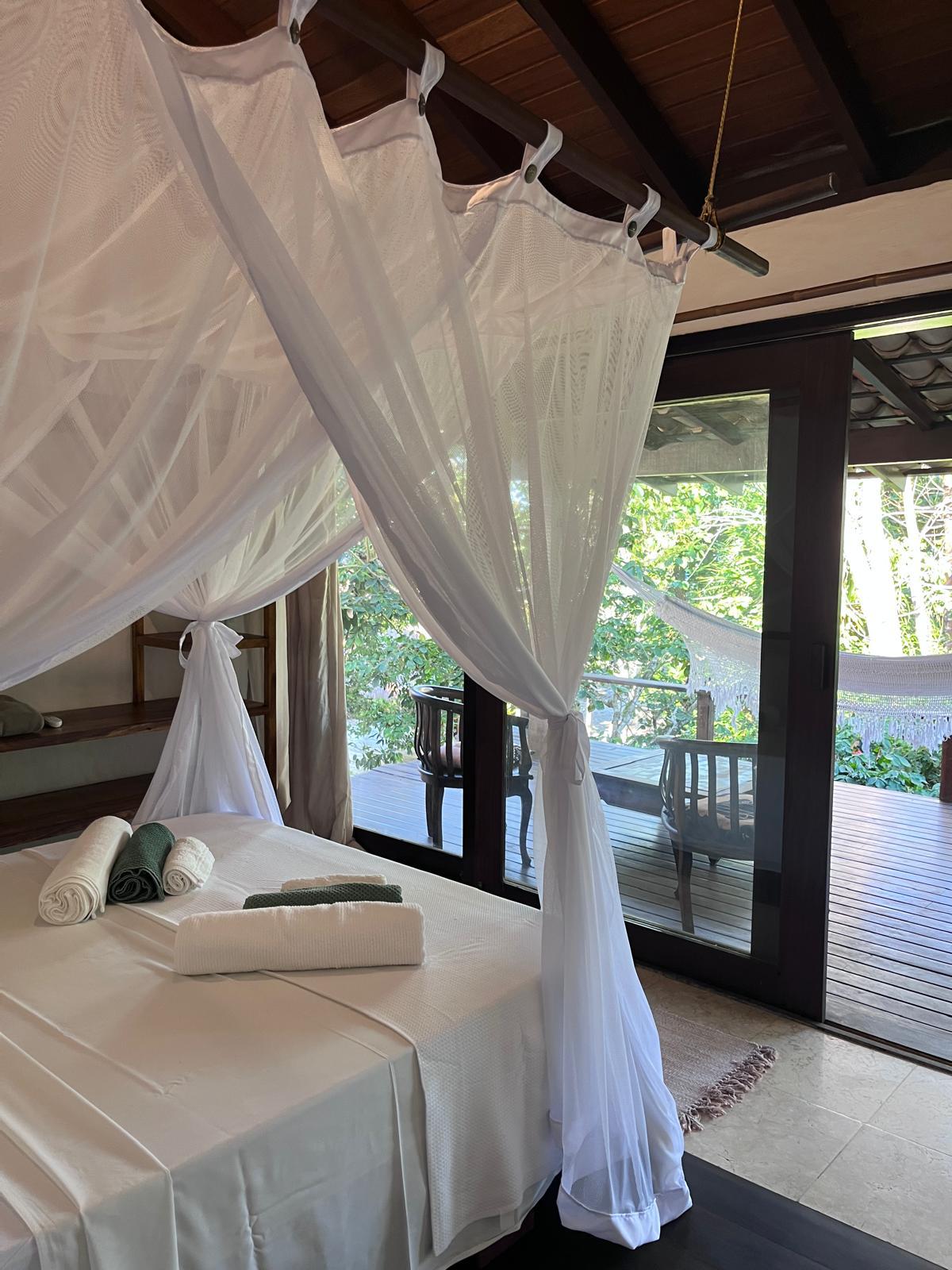 🌿 Uma forma acessível de viver a experiência do Canto Leela, em um refúgio à beira-mar cercado pela mata atlântica, ideal para quem busca descanso e simplicidade com conexão à natureza. 🌳 DIFERENCIAL DESTE BANGALÔ Bangalô elevado no meio da mata, com vista para a copa das árvores, esta acomodação oferece conforto e tranquilidade. ❄️ Acomodação climatizada, composta por: • suíte com cama queen size e mosquiteiro • 1 terraço frontal com rede • 1 varanda nos fundos