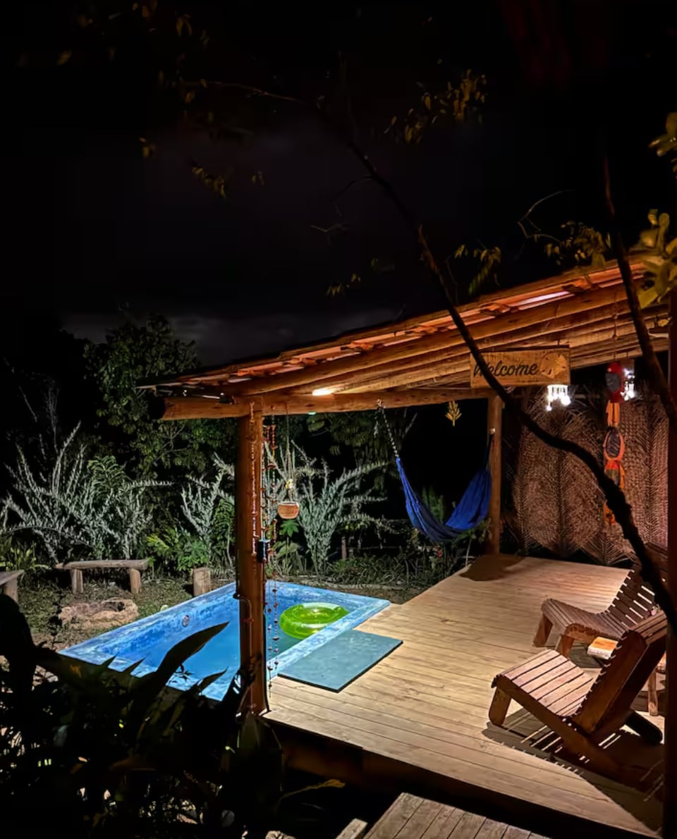 Uma casinha para desacelerar 🌿. As noites convidam ao descanso sob o céu estrelado, e a jacuzzi privativa completa a experiência — perfeita para relaxar depois de um dia de praia e trilha. Estamos a 8kms (15 min de carro) do centro de Itacaré, e também a 2kms da linda Praia de Jeribucaçu. A 1h do aeroporto de Ilhéus e na rota da Península de Maraú. Aqui no Quintal Piaçava unimos conforto, privacidade e arquitetura baiana.