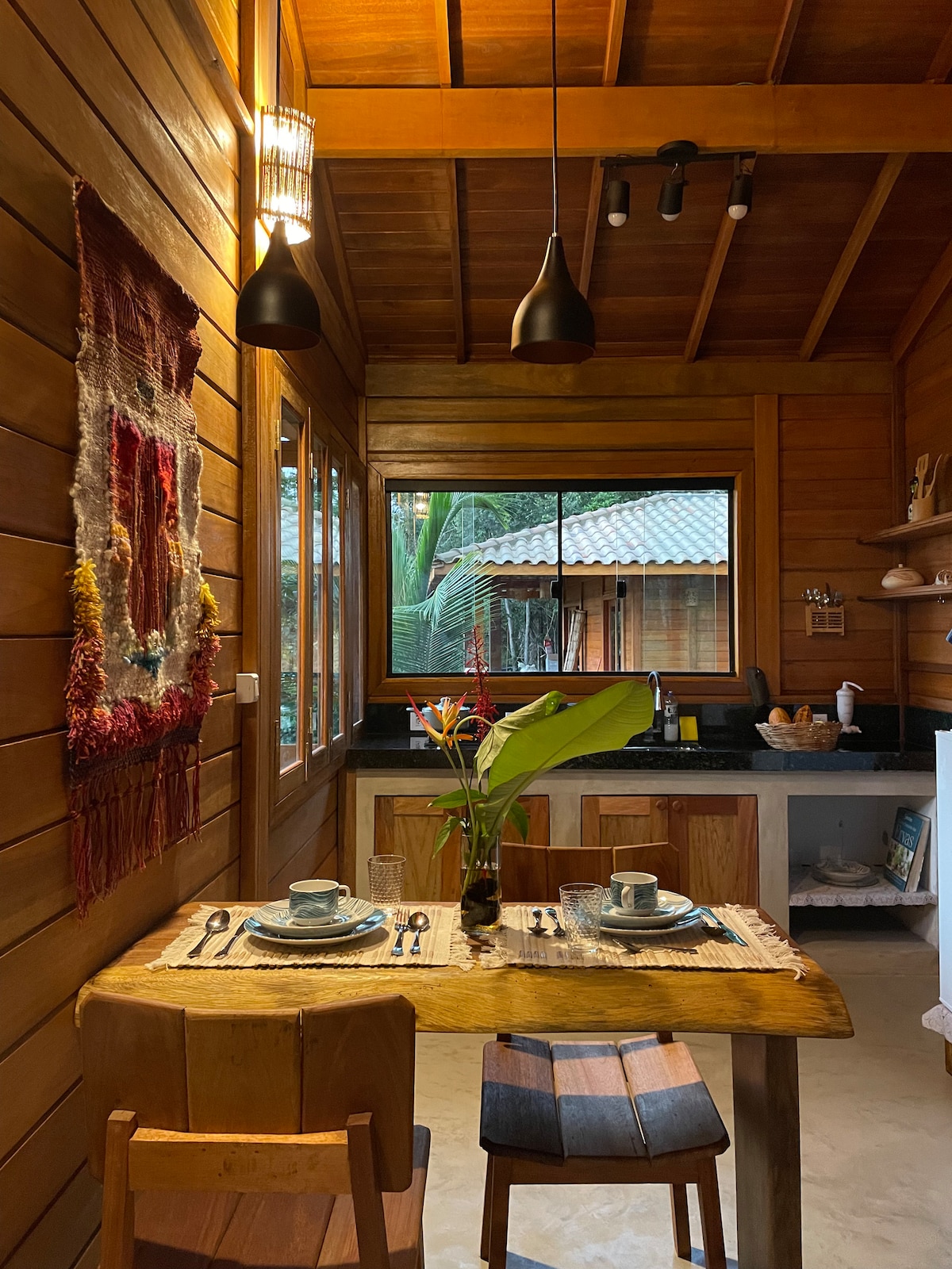 O Chalé recém-construído dispõe de quarto espaçoso com cama Queen, sofá cama e varanda com rede, espaço para trabalho, num refúgio tranquilo com várias comodidades modernas incluindo frigobar e ar condicionado. Um espaço gourmet externo charmoso com geladeira, fogão, forno a lenha, mesa e facilidades para preparar sua alimentação ao ar livre. Situado a 8km do centro de Itacaré, na Estrada de Jeribucaçú antes da trilha para a praia, a mais bonita de Itacaré.