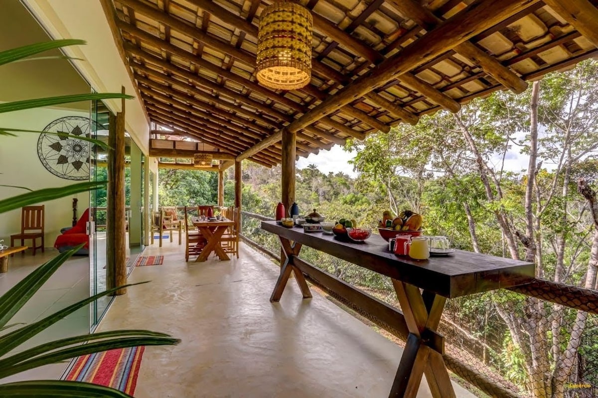 Experiência Única: Varanda, Deck privativo e Vista para a Mata. O Paraíso da Mata, localizado na região de Jeribucaçu, oferece uma experiência em meio à natureza exuberante, com 6 casas independentes e privativas, situadas em um terreno de 4 mil metros quadrados. Estamos a poucos minutos da trilha que leva à deslumbrante praia e rio da região.
