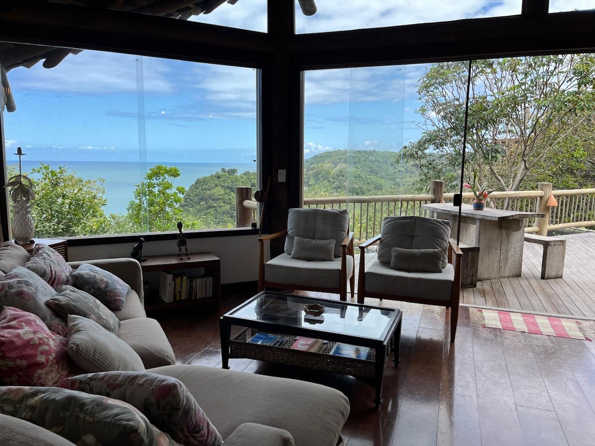 Dream house located above Praia de São José, a private beach. It has a private pool, 2 Jacuzzis (h and c), a brick Brazilian BBQ, large living room, a shaded dining area on deck, 4 bedroom suites with A/C. All bedrooms and living-rooms have sea-views. The villa is located in a secure closed condominium, with large areas of Atlantic forest. São José beach is 5 minutes walk, 3 minutes by car; from the house you can hear the waves breaking on beach. Prainha beach is 15 minutes walk, 5 mins by car.