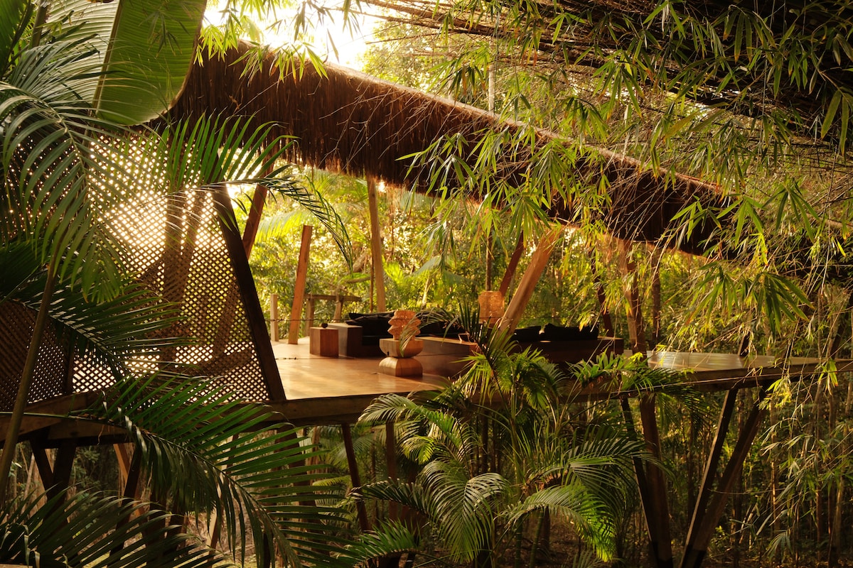 Unleash your creativity and recharge your batteries for new heights, nourished by the exuberance of the Bahia coastal Atlantic Forest, with elegance, comfort, and design. We are an organic farm, abundant in biodiversity (UNESCO hotspot) and inspirations (maker space). We provide workspaces, lodging, and experiences connecting with nature (shinrin-yoku or forest bathing) and with the local culture.