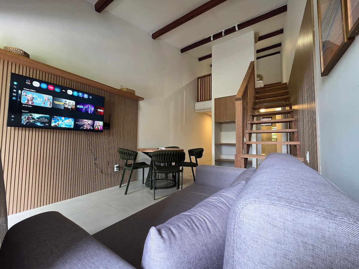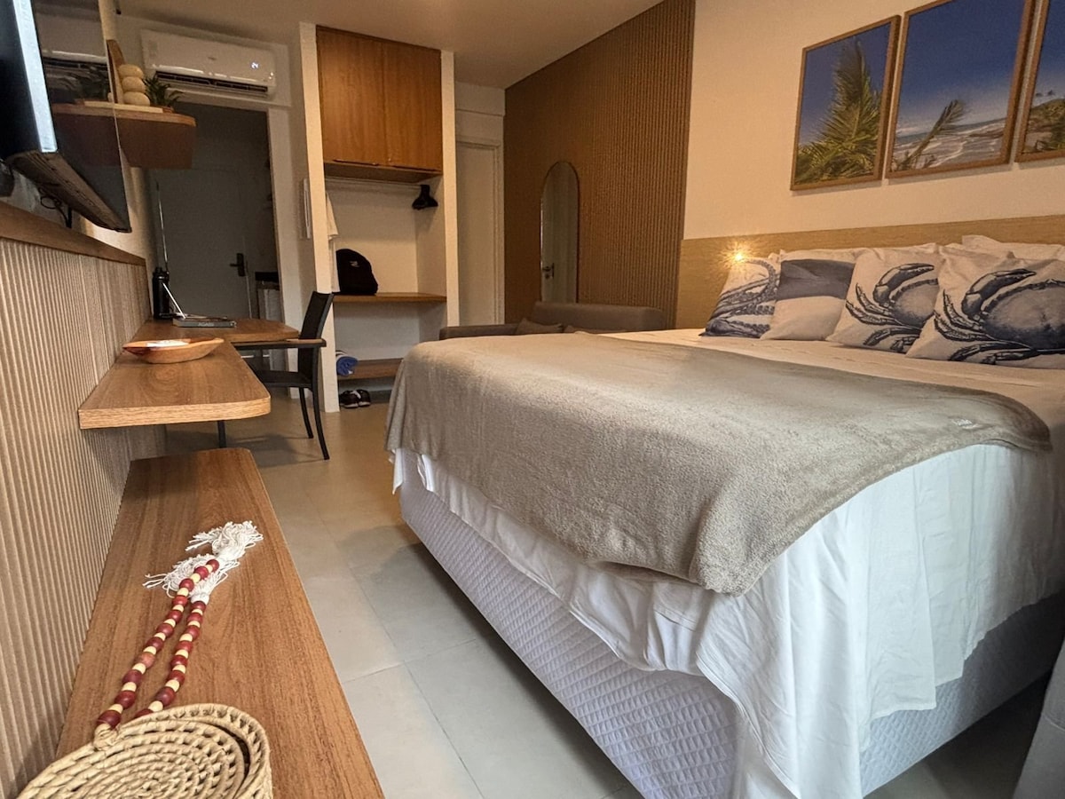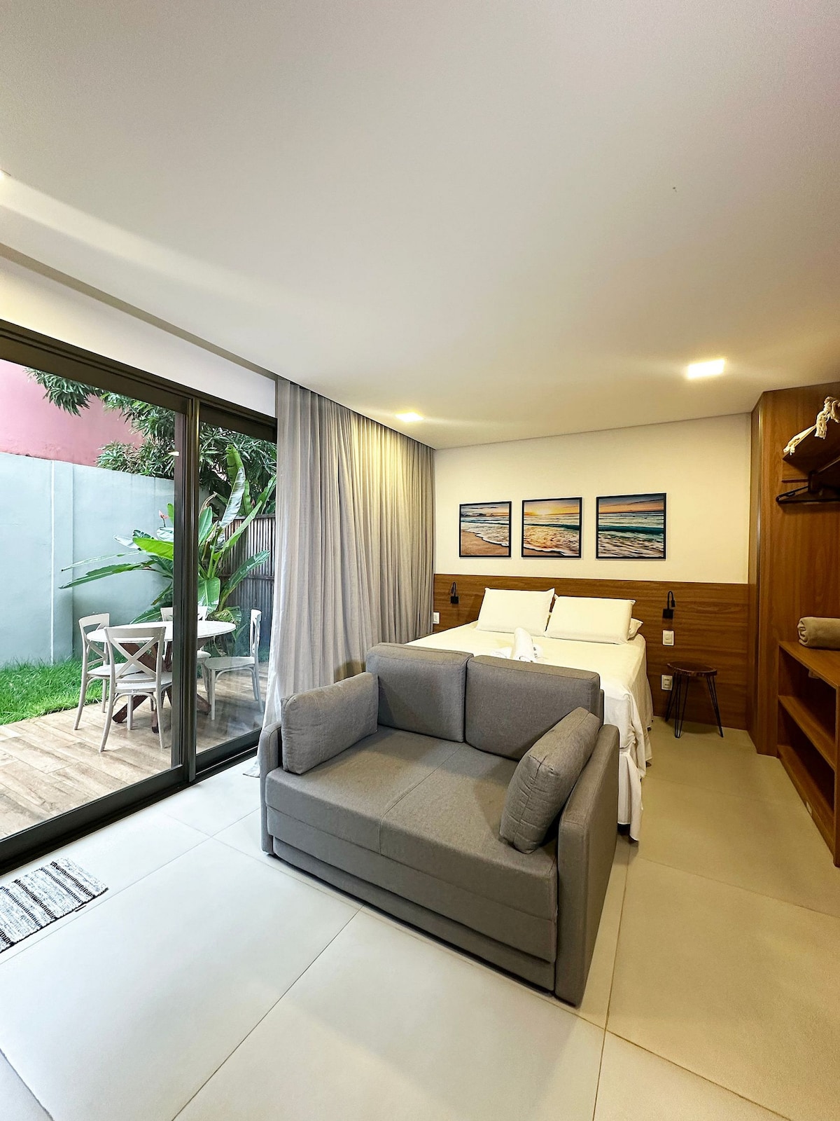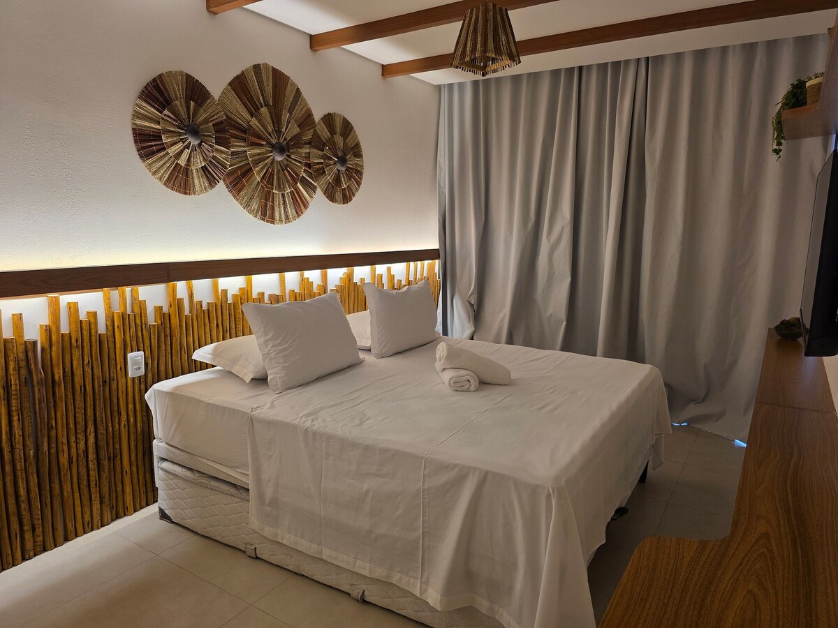 Book Your Retreat in Itacaré! In a haven where the sun bids farewell on the horizon and the waves whisper ancient tales, we present our charming studio, strategically located near the vibrant street of the village, known as Pituba. Tropical Setting: Upon crossing the threshold, you are greeted by a spacious studio, a perfect fusion of modernity and tropical summer. With an inviting double bed and a sofa bed, this is a place where comfort intertwines with style.