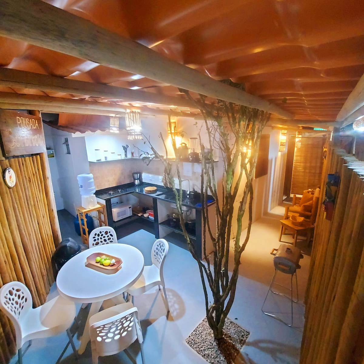 Independent accommodation with air conditioning, Wi-Fi, television, bathroom, queen-size bed, kitchenette, private patio with kitchen area and barbecue. Starting in July 2025, the Residência is equipped with a private pool and jacuzzi for a high-end experience. La Concha Beach is a 1-minute walk from the accommodation. The La Concha neighborhood in Itacaré is a quiet place with a shared ocean and nature. The accommodation is close to all amenities, shops, beaches, and the city center.