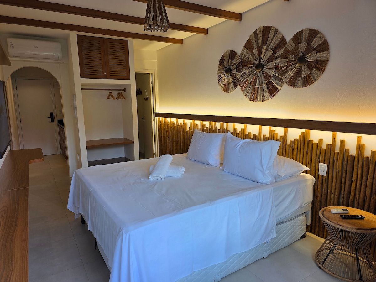 Book Your Retreat in Itacaré! In a haven where the sun bids farewell on the horizon and the waves whisper ancient tales, we present our charming studio, strategically located near the vibrant street of the village, known as Pituba. Tropical Setting: Upon crossing the threshold, you are greeted by a spacious studio, a perfect fusion of modernity and tropical summer. With an inviting double bed and a sofa bed, this is a place where comfort intertwines with style.