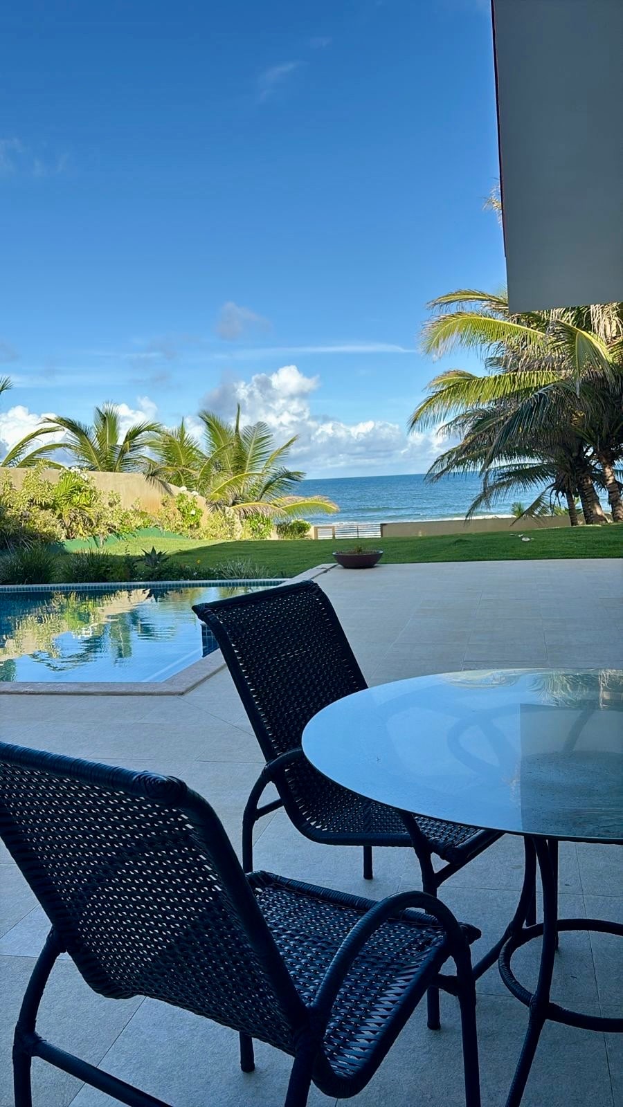 Casa frente mar, dentro de condomínio fechado em Guarajuba. Com Desing único, oferece todo conforto, sofisticação e aconchego que sua família merece. Totalmente mobiliada com móveis de primeira linha, jacuzzi para 06 pessoas, living externo, todas as suítes climatizadas e equipadas com armários, 03 camas de casal e 01 sofá cama, completíssima de utensílios de cozinha, cama, mesa e banho. TV, Wi-Fi, filtro de água, sofá, duas geladeiras, máquina de lavar roupa, fogão, mesa de jantar, etc.