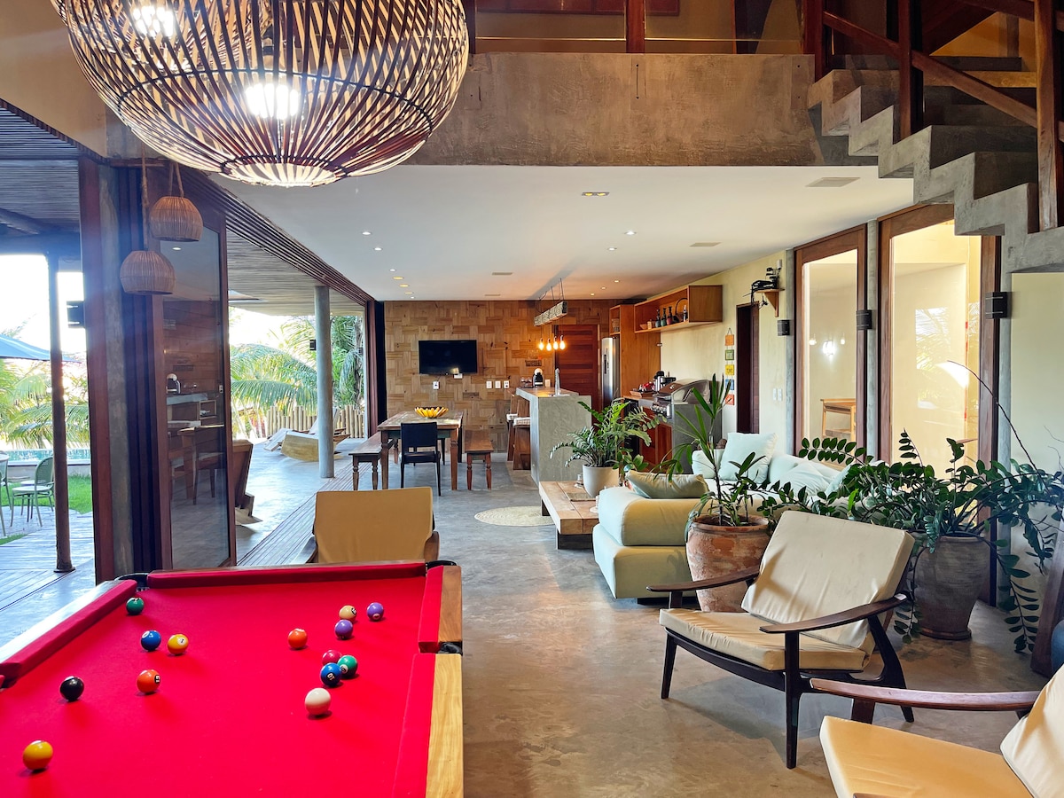 #NÃO É PERMITIDO EVENTOS# A casa fica localizada no Condomínio dos Corais (mesmo do Resort Vila Galé), aproximadamente 250m da praia onde ficam as principais barracas (Carlinhos e Prefeitinho), 5 minutos de caminhada da praia, que é tranquila e forma piscininhas naturais na maré baixa A casa possui completa infraestrutura, com ar condicionado split em todos os 5 quartos. Relaxe na ampla piscina com deck molhado e aproveite o espaço gourmet, equipado com churrasqueira e cervejeira profissional