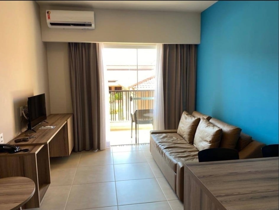 Located 200m from Taperapuã BEACH - Close to the Axé Mói complex; - Next to the Orla Center shopping center; - 1 FREE parking space; - SUITE with AIR CONDITIONING, TV, FRIDGE AND DESK, SAFE; - Security (24HRS GATEWAY); - The hotel has swimming pools for adults and children, sauna, water slides for adults and children, a beautiful structure of water park. - Pool bar - Kids Space - Football field - Polysports courts. - Wet Bar - Adademy