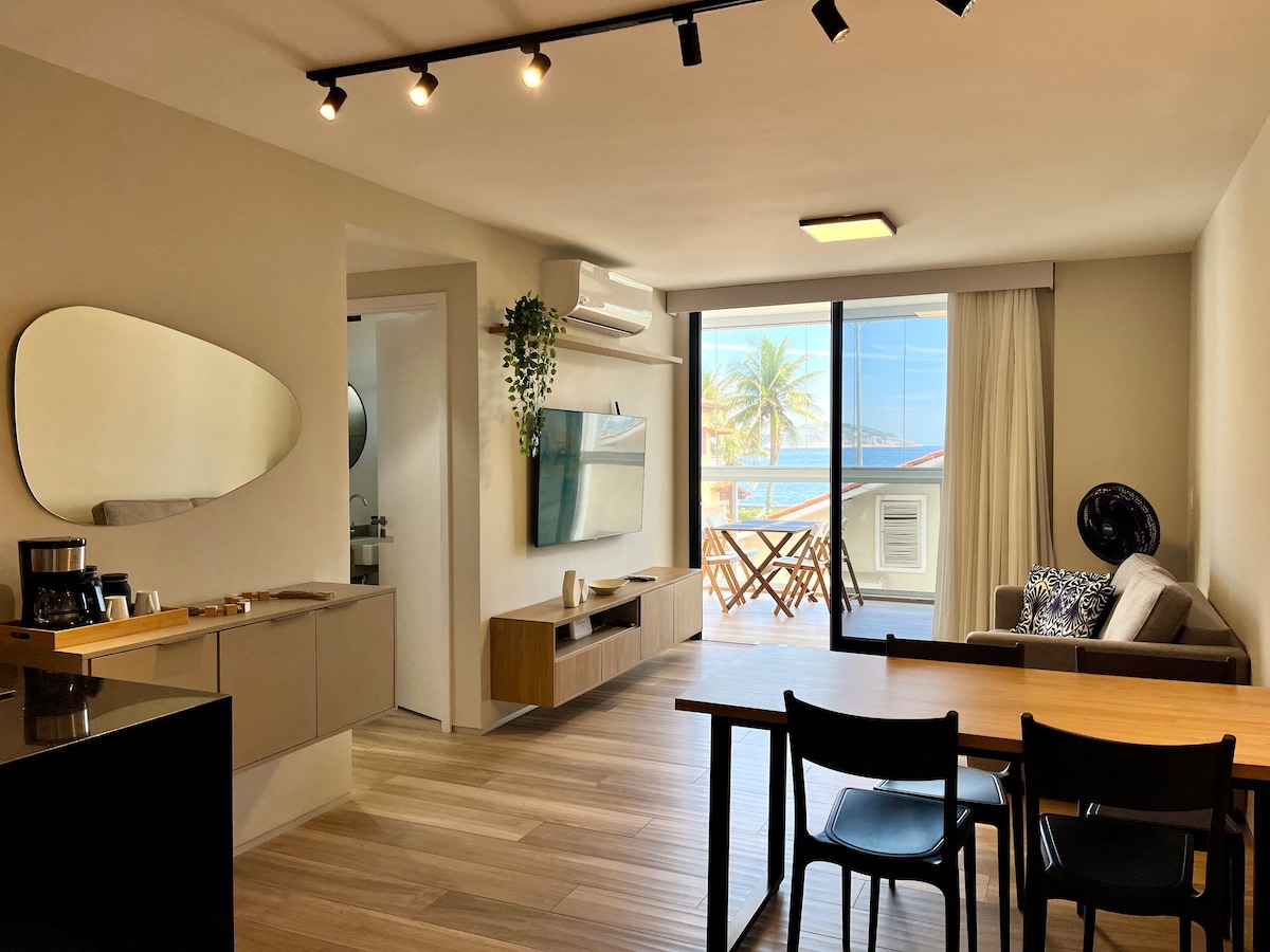 Aluguéis apenas via AIRBNB! Newly renovated and equipped to give you the best experience you can have in Rio de Janeiro. Located in the front of the most popular beach in Brazil, the whole apartment has a view to the ocean: you can cook watching the sea, watch the sunrise in the living room, wake up watching the beach from the beds, and relax in a hot tub while looking to the shore. It has split air conditioner in each room, Wi-Fi & TVs. Plants, arts, and crystals compose the atmosphere.