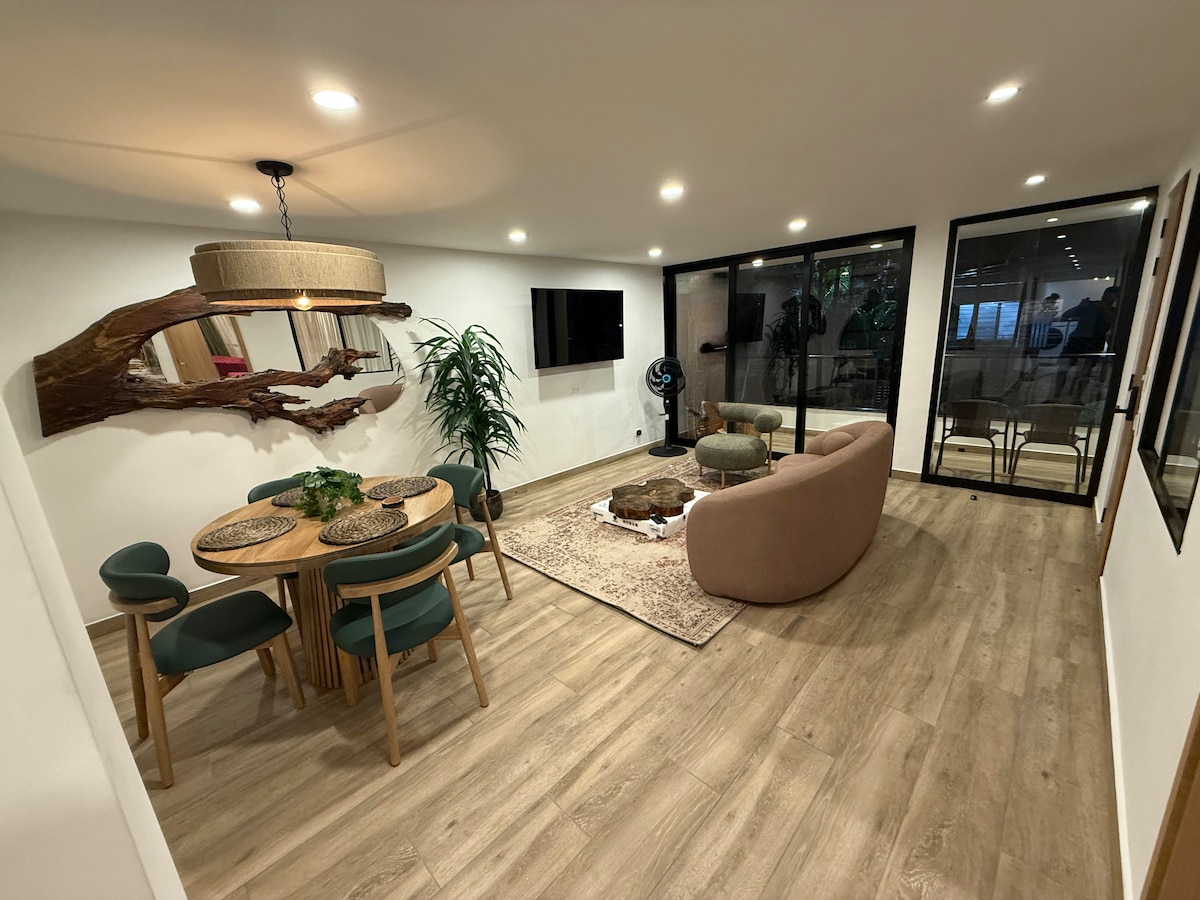 Disfruta de este nuevo apartamento de diseño minimalista con balcón privado + terraza compartida con hermoso mural hecho por artistas locales. En este nuevo espacio podrás disfrutar de trabajar desde casa con internet de alta velocidad, convirtiéndose en un lugar perfecto para visitar Medellín y ver los lugares más turísticos de la ciudad. Ubicación céntrica a 8 minutos a pie del barrio Laureles, estación de metro, restaurantes, cajeros automáticos, supermercados, entre otros