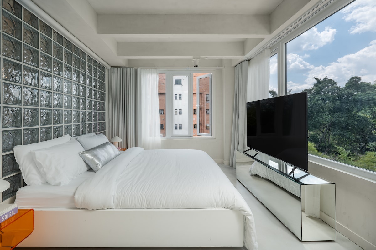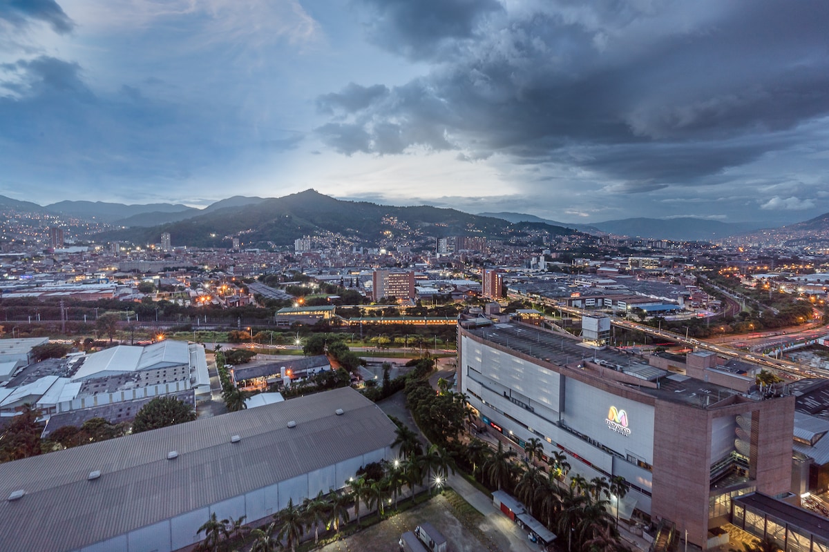 RECENTLY RENOVATED -High-speed internet great for remote work -Brand new A/C -Fully renovated Industrial design apartment -King size bed -Breathtaking views of Medellín (trust me, worthwhile to stay here) -19th floor -Unbeatable location in Poblado near to Provenza and Lleras Park -Modern amenities -Spacious living area -Smart TV x 2 -Fully equipped kitchen -Washer & Dryer Tower -Pool -Gym -Coworking space -Restaurant inside the building -Private parking -Self check-in -24/7 Security