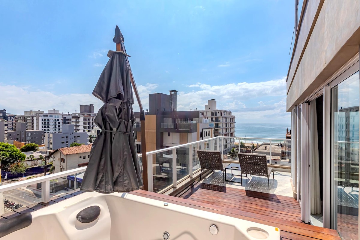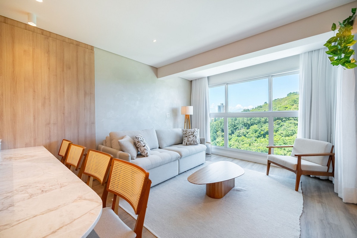 Luxuoso apto na Praia dos Amores ( Praia Brava) com vista ao mar e Morro do Careca. Ar condicionado/aquecedor em todos os comodos. TVs de 50 e 43 polegadas. Quartos com black-out. Aquecedores de toalhas. Praia fica a apenas 8 mins caminhando. Morro do Careca 12 mins até o topo. A roda gigante a 3 mins de carro. 2 vagas de garagem privativas. Comprimento: 4m e 65 cm Largura: 2m e 35cm Observe as regras da casa para confirmar que o apto se adequa ao perfil de sua viagem.