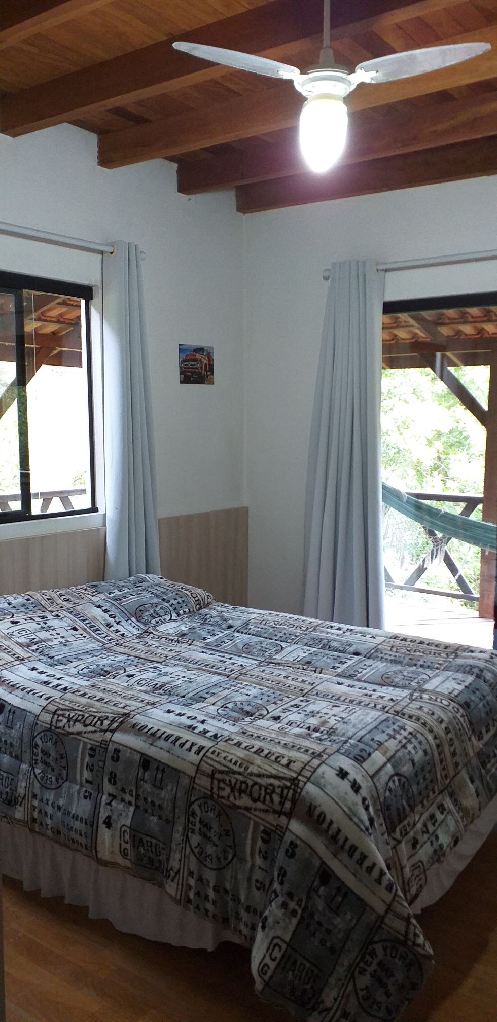 Bem-vindo ao Rancho Bartini! Se busca um refúgio tranquilo para relaxar, nosso rancho é o lugar ideal. Com ambiente rústico e charmoso, oferecemos área coberta com mesas, cozinha completamente equipada, banheiros confortáveis e estacionamento privativo. Para entretenimento, temos mesa de ping-pong, pebolim, Wi-Fi, TV, churrasqueira e fogão a lenha. Temos 4 quartos: Três com cama de casal e dois beliches cada, e um com cama de casal. 2 Quartos com ar-condicionado e 2 com Ventiladores.