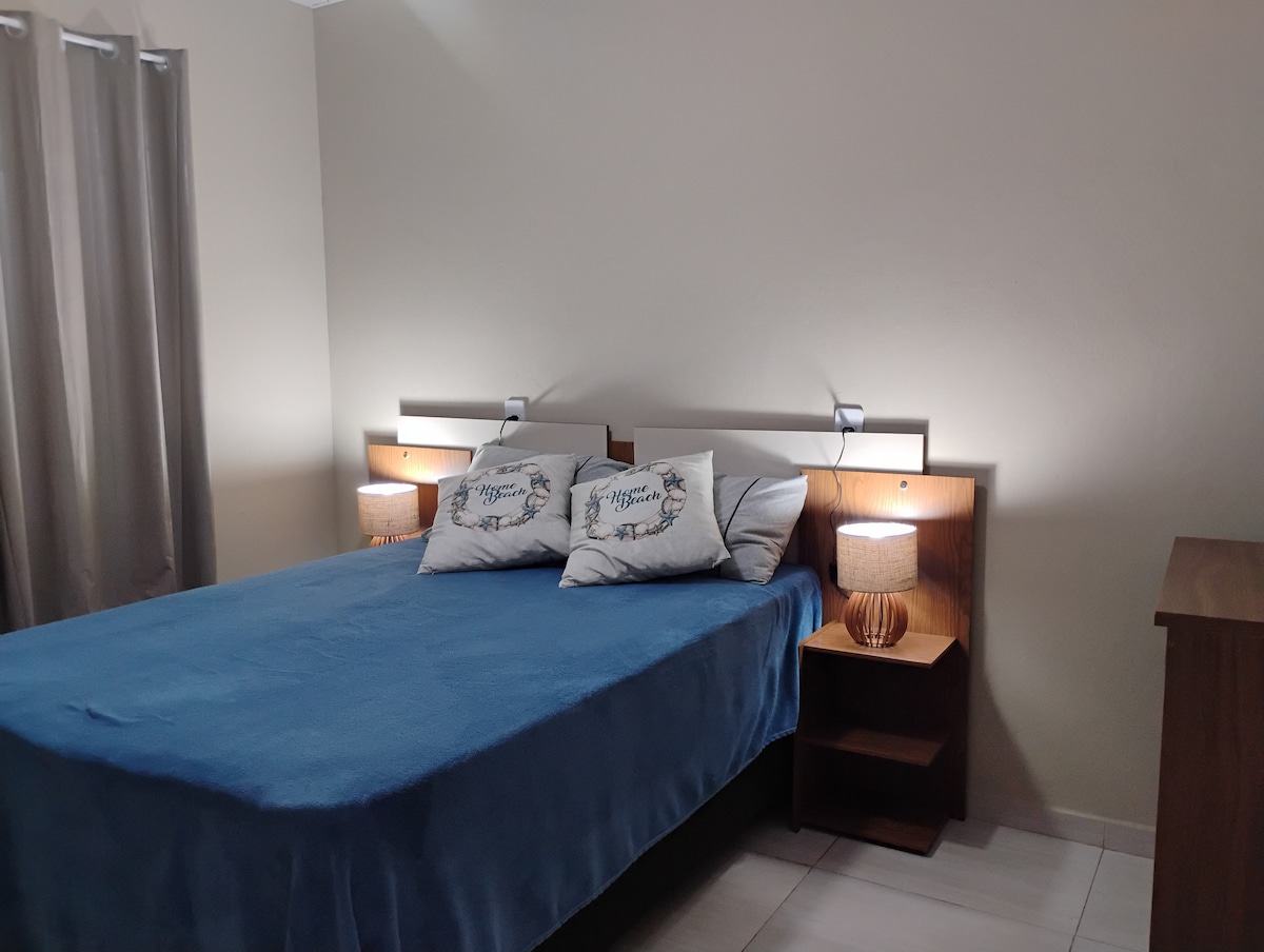Relaxe com toda a família nesta acomodação tranquila. Vista para o mar e poder assistir o nascer do sol todos os dias. 1 bicama na sala 1 quarto com cama de casal 1 quarto com beliche 1 banheiro Cozinha completa com utensílios 1 sala com TV e Wi-fi 1 área de serviço com máquina de lavar roupas 1 vaga de garagem Condomínio: Portaria 24h Piscina adulto e infantil 4 quiosques com churrasqueira 1 salão de festas Academia Brinquedoteca e play ground Salão de jogos Mercadinho Lavanderia