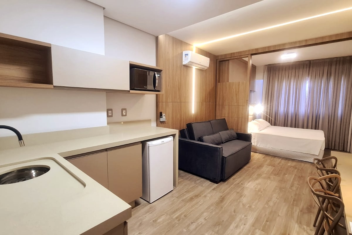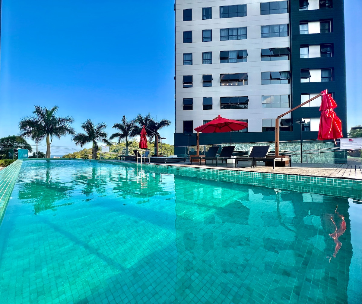 Este acolhedor Studio com vistas panorâmicas para o mar e roda gigante, localizado estrategicamente ao lado da praia, na barra norte da cidade, climatizado, é perfeito para uma estadia turística ou profissional. “O custo benefício é fantástico! Localização perfeita, ao lado da praia, sendo possível acessar a cidade sem tirar o carro da garagem e ainda poder usufruir da piscina, academia, parquinho infantil, quadra de esportes, sauna (seca), sala de jogos, e mirante!” Solange, sua anfitriã