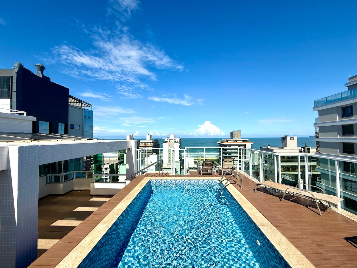- Ap c/ 200m² privativos na Praia Brava Itajaí, 85m² terraço, 2 vagas; - Piscina aquecida (solicitar antecipadamente/R$ 70/dia), hidro, vista mar, sauna vapor, ducha, deck, gazebo; - Espaço gourmet churrasqueira carvão; - Suíte master + 2 demi-suítes; - Home Office; - Sala de estar e jantar integrada c/ cozinha americana; - Lavabo, área serviço; - A/C Split e Wi-Fi Fibra 500MB em todo ap; - Rua da praia, perto de restaurantes, mercado, shopping, 5 min. de B.C. *Exige-se RG hóspedes.